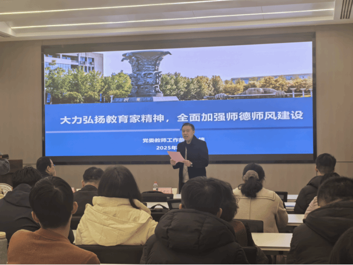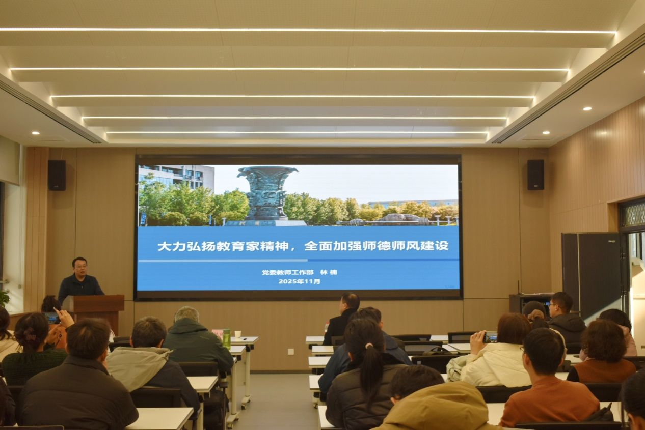 为深入学习贯彻习近平总书记关于教育的重要论述,落实立德树人根本任务,进一步团结凝聚学院广大教师以更加奋发有为的精神状态投身教育强国建设实践,大力弘扬教育家精神,为学校实现“天下工大、世界三航”远景目标注入强劲动力。12月4日,a小说 邀请校党委教师工作部副部长林楠面向全体教师党员作了题为《大力弘扬教育家精神,全面加强师德师风建设》的专题报告。副院长徐根玖主持会议。
