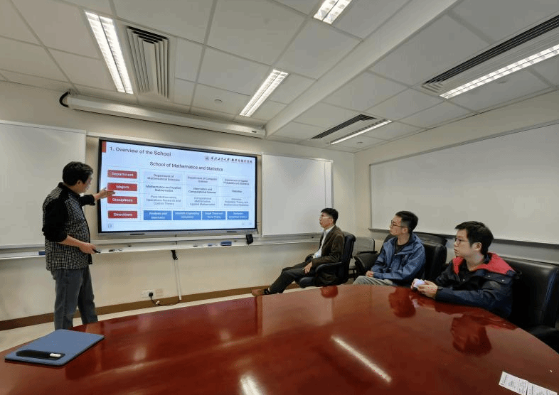 12月8日上午,学院代表团访问了香港科技大学,与香港科技大学数学系系主任徐昆教授、数学系终身教授陈北方、副主任钱铁铮教授,理学院国际事务主任严民教授及助理教授苏薇开展了座谈交流。院长助理刘晓刚详细介绍了学院人才培养情况及学院海外人才引智政策。双方就暑期国际学堂、暑期夏令营、本硕博人才培养等合作议题开展友好交谈。