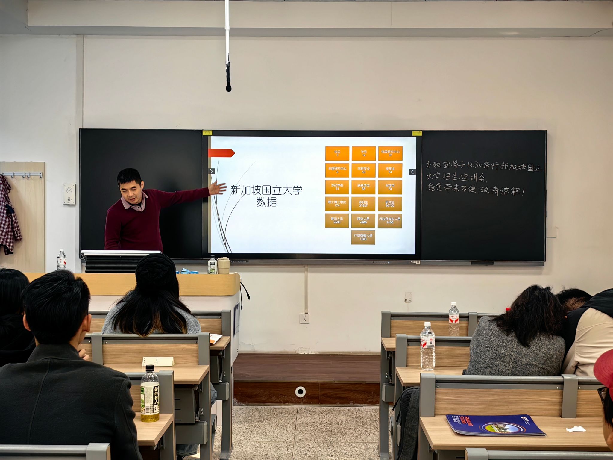 为搭建优质国际化升学平台,助力学子对接世界顶尖教育资源,12 月 4 日 下午,a小说 于长安校区教西成功举办 “九章越洋,学贯中外”世界名校宣讲会。新加坡国立大学(2026QS第8)、英国布里斯托大学(2026QS第51)两大名校代表受邀分享本硕博项目。学院党委副书记张莹教授、国际交流与合作办公室主任肖曼玉教授、外事秘书李卓榕,新加坡国立大学理学院助理院长王飞教授、中方招生负责人 Joanna 老师,英国布里斯托大学 3+1 本硕双学位项目中方负责人王秋红老师及20余位本校学生共同出席活动。宣讲会由李卓榕老师主持。