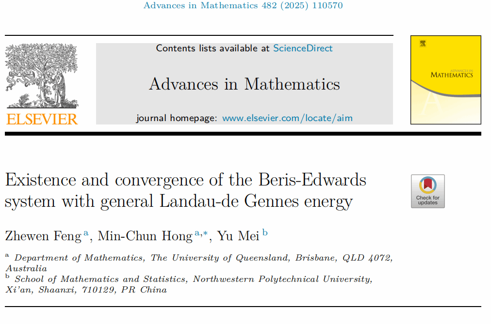近日,a小说 梅钰副教授与澳大利亚昆士兰大学冯哲文博士、洪敏纯教授合作,在液晶流Beris-Edwards系统强解的存在性与收敛性方面取得重要进展。研究成果形成79页论文“Existence and convergence of the Beris-Edwards system with general Landau-de Gennes energy”在数学综合期刊《Advances in Mathematics》上在线发表。按国际惯例,论文作者依姓名字母顺序排列。