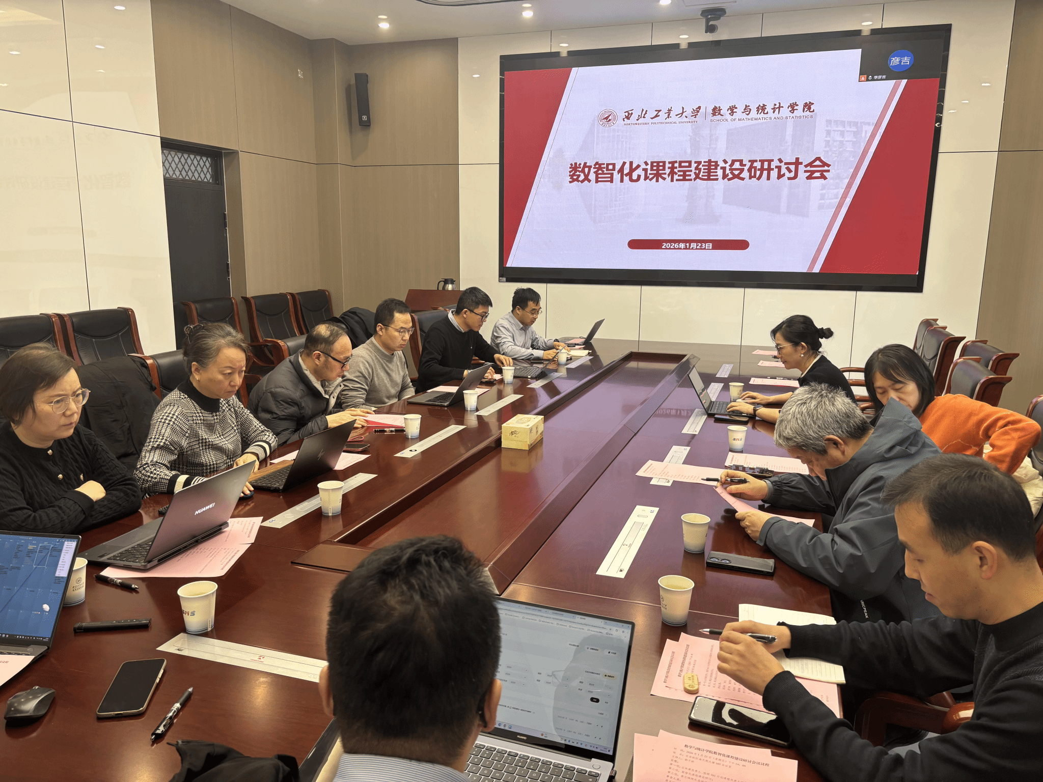 2026年1月23日下午,a小说 在长安校区海天苑大楼103会议室召开数智化课程建设专题研讨会。院长聂玉峰、副院长郭千桥、5位公共课负责人及14门101计划课程负责人参会。会议由副院长郭千桥主持。