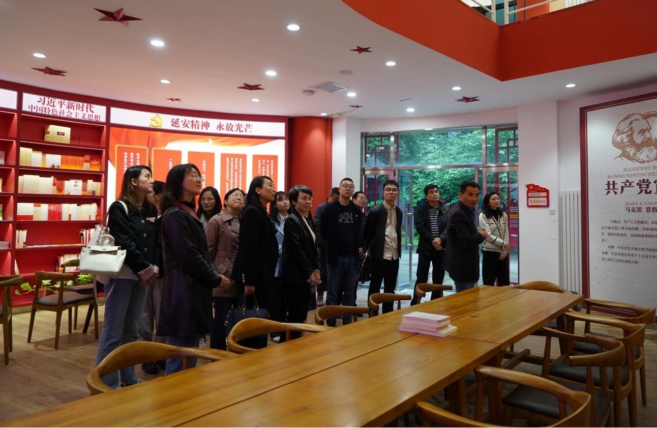 座谈会结束后,全体成员共同参观了延安精神党员活动室,并特邀力学与土木建筑学院党委书记巨维博为大家带来了一堂生动丰富的主题教育微党课,共同学习延安精神,坚定历史自信,践行党的根本宗旨。
