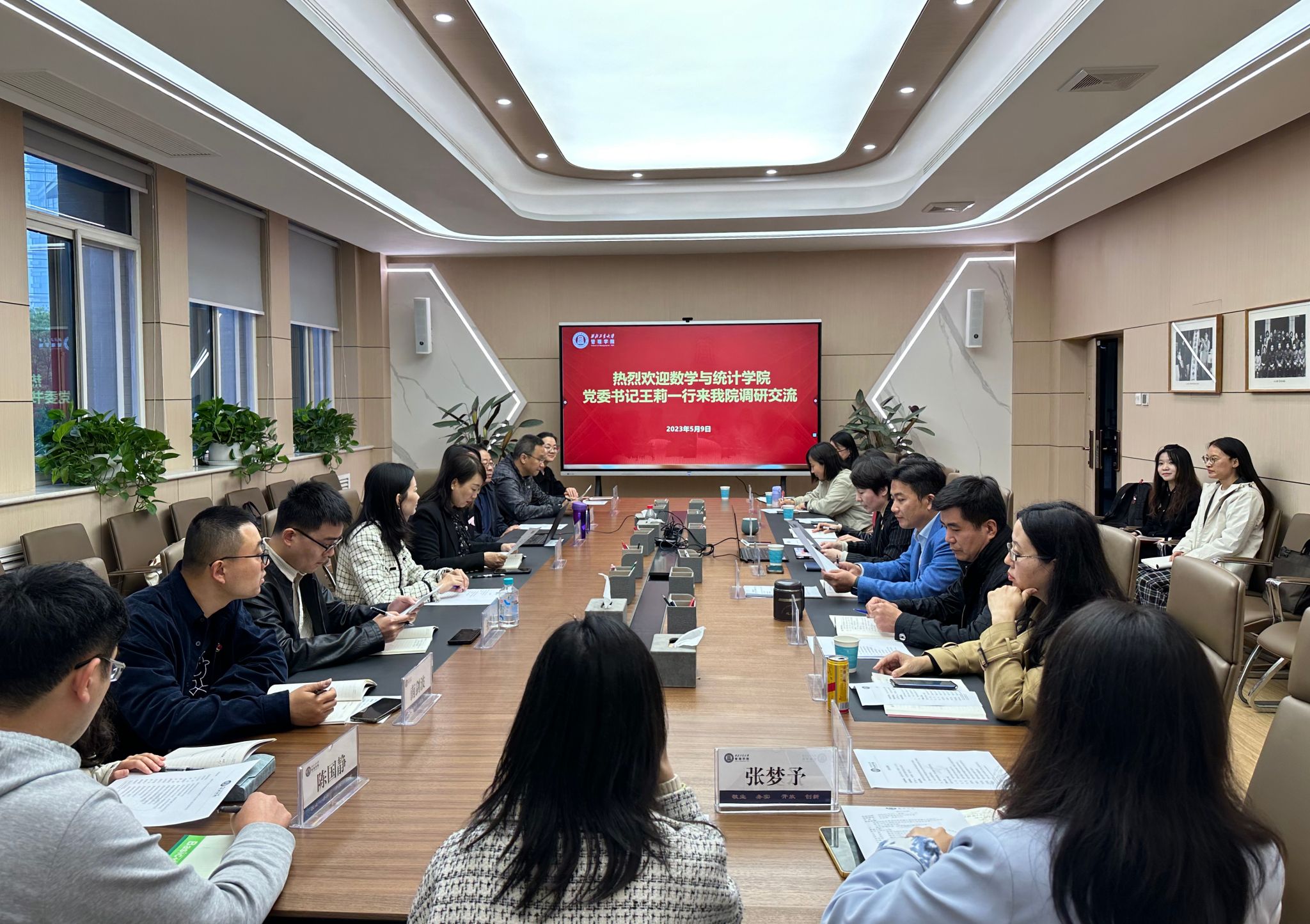 为深入学习贯彻习近平新时代中国特色社会主义思想主题教育,扎实开展调查研究,加强与兄弟学院之间的沟通交流,推动校、院高质量发展。5月9日下午,a小说 党委书记王莉、公共政策与管理学院党委副书记谢丹一行到管理学院调研交流,开展主题教育联学共建活动。师生党支部书记代表、党建学工队伍召开座谈会,共话党建工作,共谋学院发展。