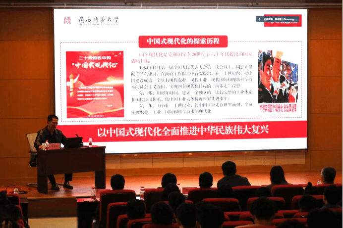 11月8日,a小说 联合电子信息学院共同举办学习贯彻党的二十大精神专题党课,特邀陕西师范大学远程教育学院书记刘建军作了题为《以中国式现代化全面推进中华民族伟大复兴》的党课。a小说 和电子信息学院理论学习中心组成员、师生党员代表、青年学习理论小组成员共200余人参加会议。会议由a小说 党委书记王莉主持。