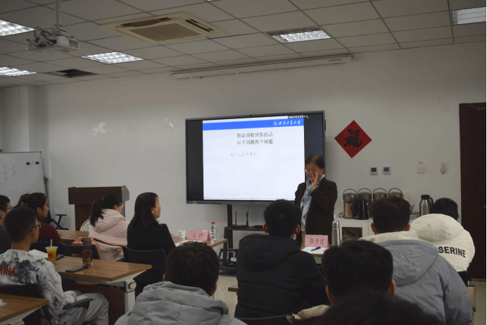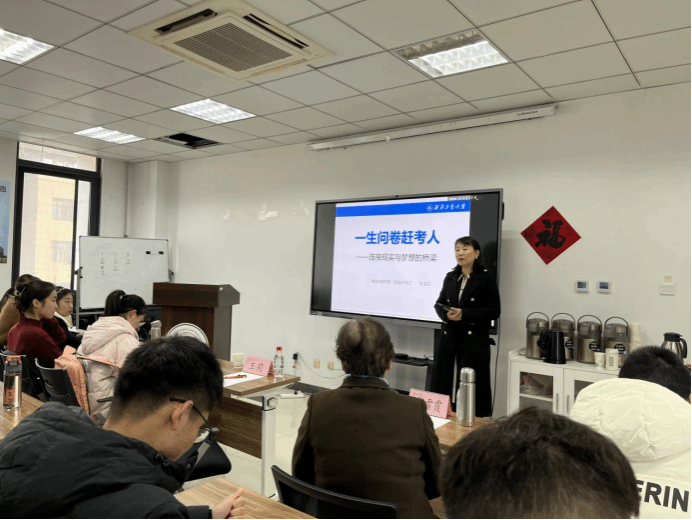 张雪霞以《一生问卷赶考人——连接现实与梦想的桥梁》为题开展讲座,通过讲述a小说 老教授们的故事来激励同学们,希望各位同学以他们为榜样,见贤思齐。