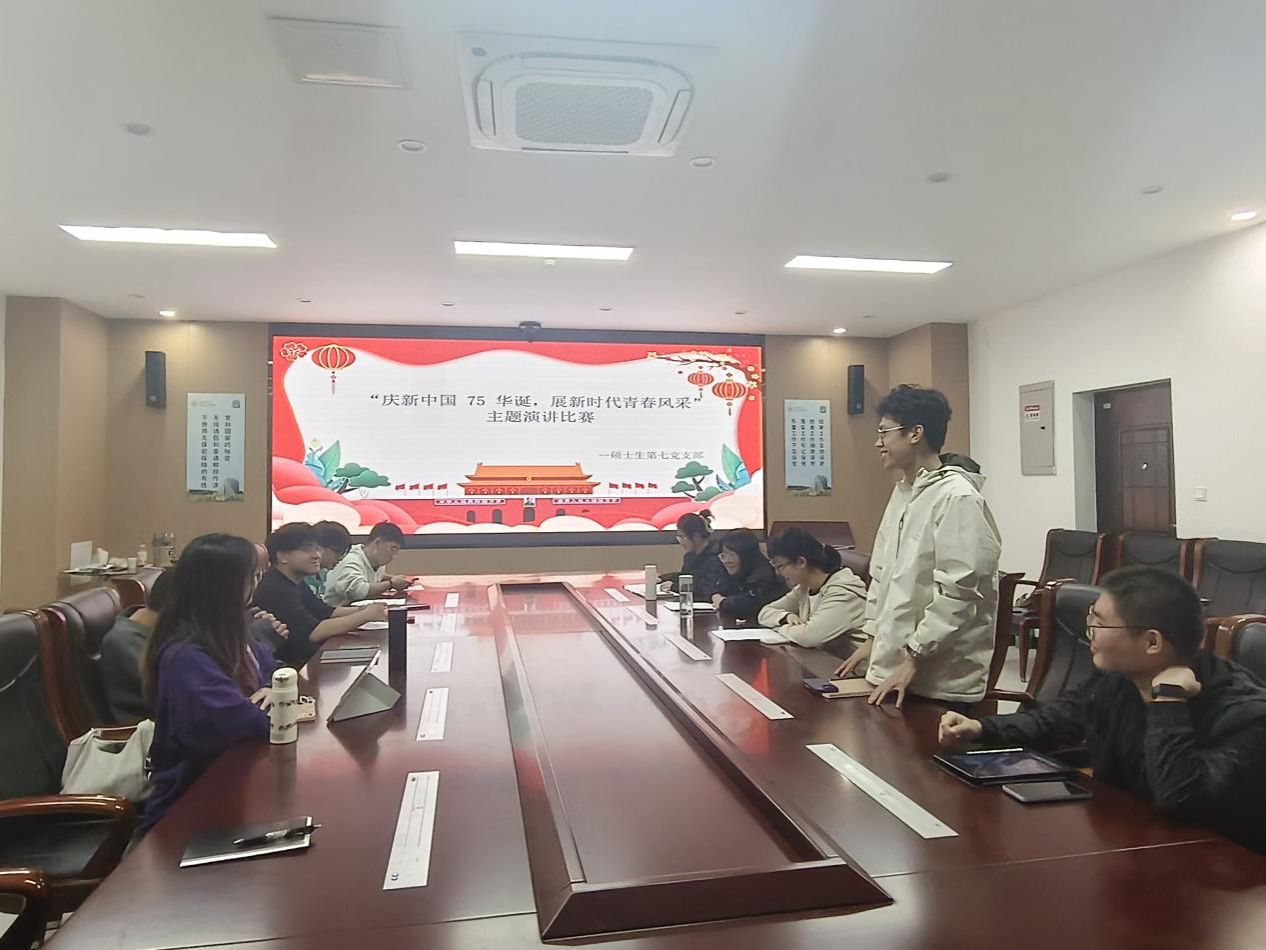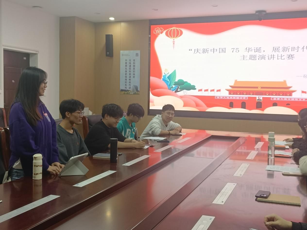 10月14日晚,a小说 硕士生第七党支部组织“庆新中国75华诞,展新时代青春风采”主题党日活动,学习习近平总书记在全国民族团结进步表彰大会上关于铸牢中华民族共同体意识的讲话,并开展了“庆新中国75华诞,展新时代青春风采”演讲比赛。活动由党支部书记黄凤同志主持,支部全体党员参加了此次活动。