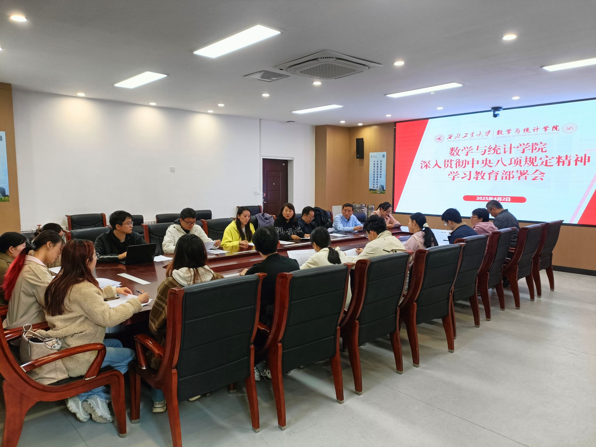 4月2日上午,学院党委召开理论学习中心组会议,学院领导班子、院长助理、办公室主任参加会议,会议由党委书记王莉主持并做进一步工作部署。会议传达了学校党建工作领导小组会议暨基层党委(党总支)书记扩大会精神,重点学习了《中共a小说 委员会关于开展深入贯彻中央八项规定精神学习教育的实施方案》。会议强调,在全党开展深入贯彻中央八项规定精神学习教育,是党中央作出的重大决策,是今年学校和学院党建工作的重点任务。全院师生党员要充分认识学习教育的重要性,增强学习教育的实效性,一体推进学查改,确保学习教育的有效性,着力健全长效机制。会议要求,要切实增强政治责任感,加强组织领导,融入日常、抓在经常,把开展学习教育同落实学校党委重大决策部署、推动学院高质量、高水平、高速度发展结合起来,把学习成效转化为扎实推进学院年度重点工作和任务的有力行动。