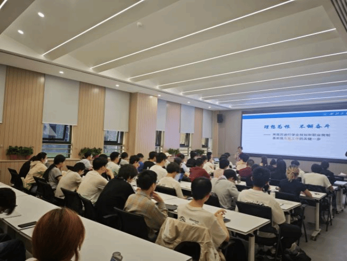 会上,张老师从“认识自我”与“把握时代”两个维度展开讲解。她指出,新时代青年既要深入认知自我的兴趣特长、能力结构和价值追求,更要胸怀"国之大者",主动对接制造强国、网络强国等国家战略需求。通过分享我校优秀校友参与国家重大科技工程的成长故事,张老师生动诠释了个人理想与民族复兴的辩证关系。