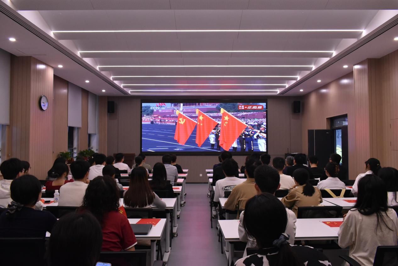 9月3日上午,a小说 党委组织党员代表、师生代表分别在海天苑大楼E108、E207会议室和教学西楼D座203、204教室集中观看纪念中国人民抗日战争暨世界反法西斯战争胜利80周年阅兵仪式实况直播。
