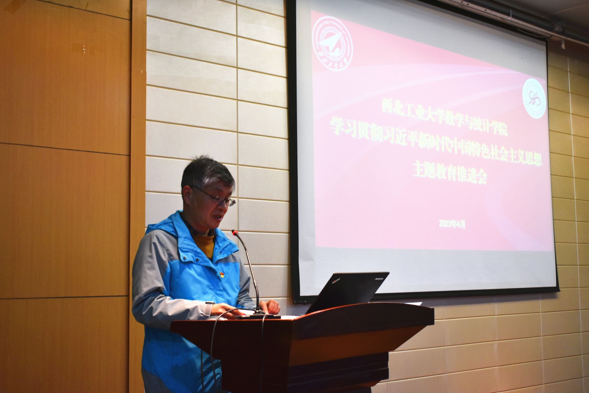 按照学校学习贯彻习近平新时代中国特色社会主义思想主题教育工作安排部署要求,进一步推动学院主题教育工作走深走实,4月25日,a小说 在长安校区学院楼报告厅组织召开了学习贯彻习近平新时代中国特色社会主义思想主题教育推进会。学院领导班子全体成员,学院全体师生党员参会。会议由党委书记王莉主持。