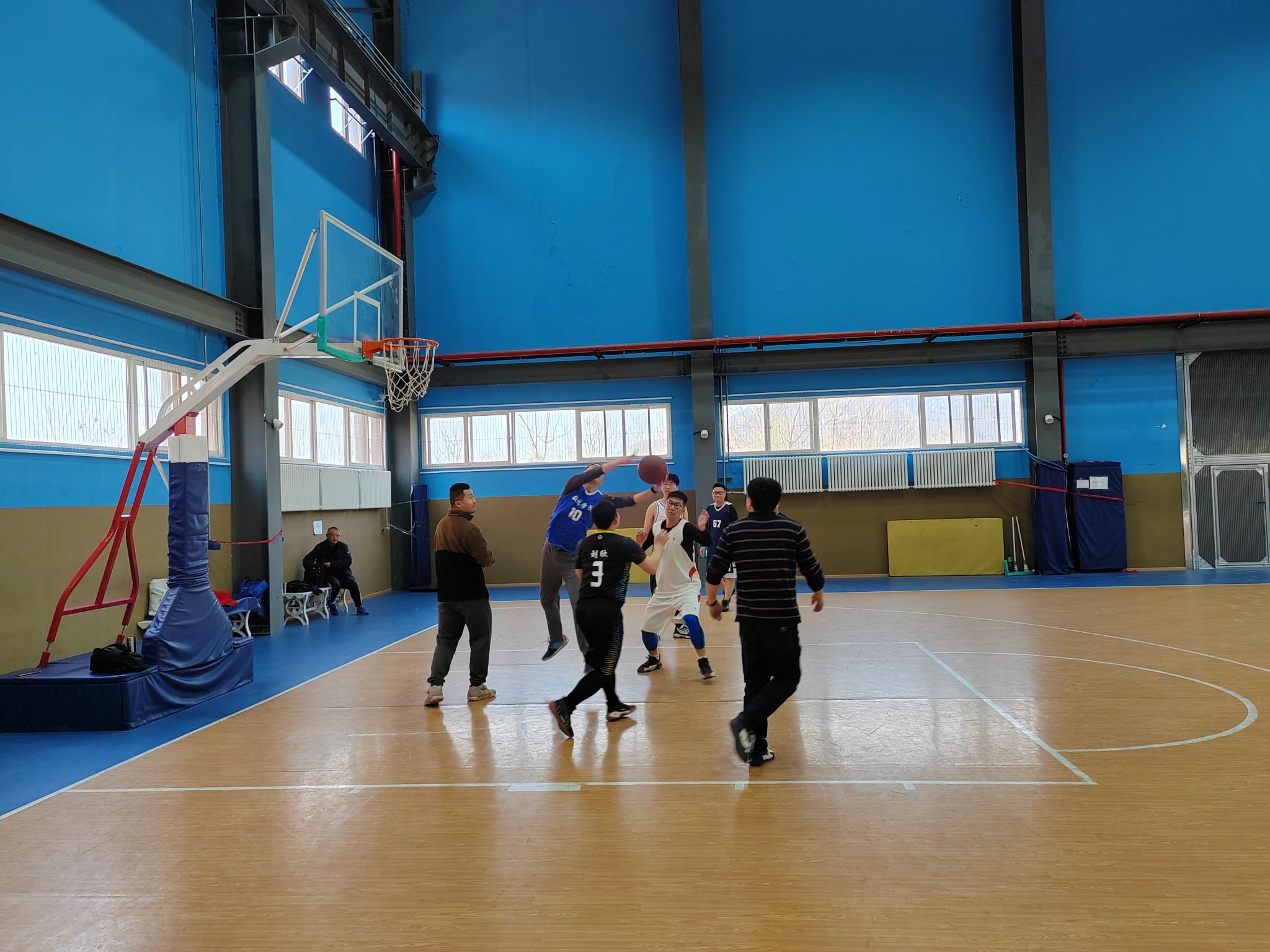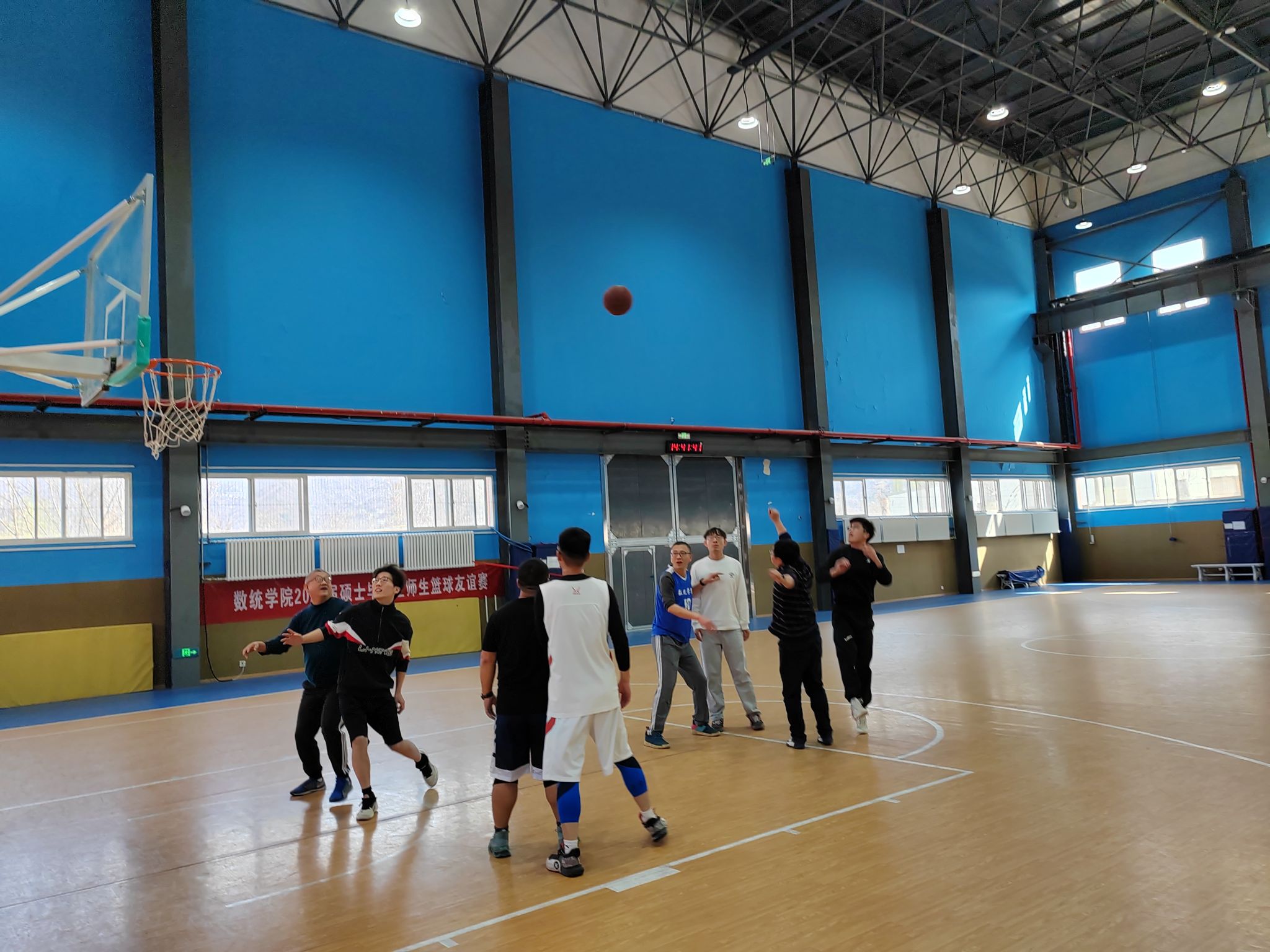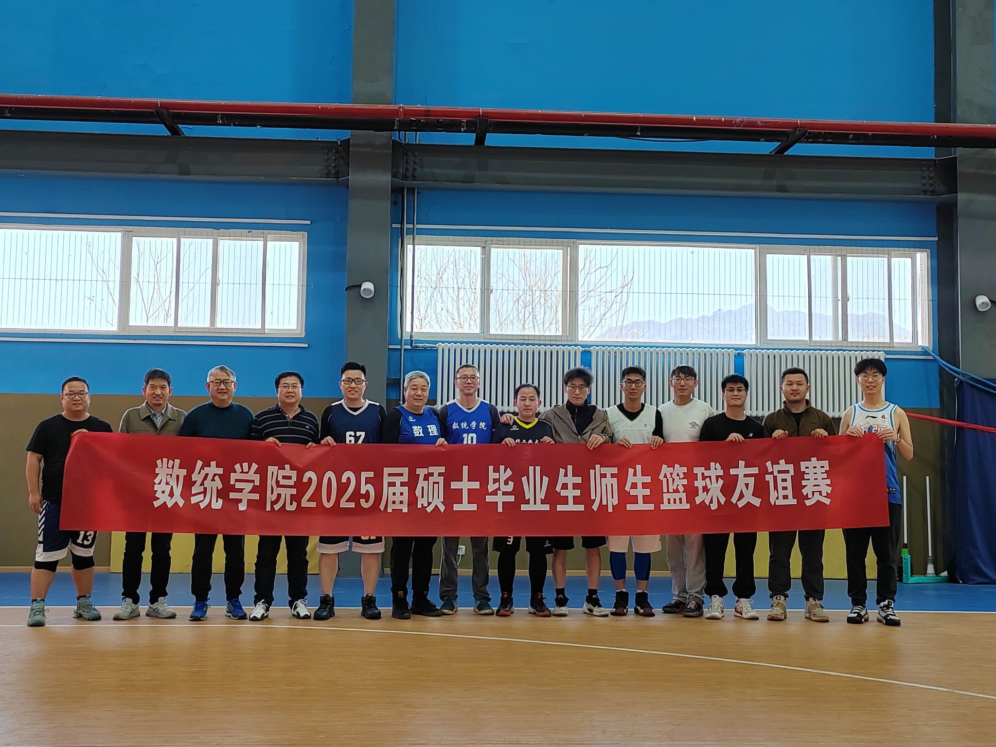 为进一步丰富学院毕业生毕业教育活动内容,增进师生情谊, 3月18日下午两点,a小说 工会在长安校区家属区体育馆内成功组织了一场精彩纷呈的2025届硕士毕业师生篮球友谊赛。学院工会主席佘红伟、计算科学系主任赵俊锋、应用概率系主任王亮以及学院多名教师代表、8名硕士毕业生代表共同参加比赛。