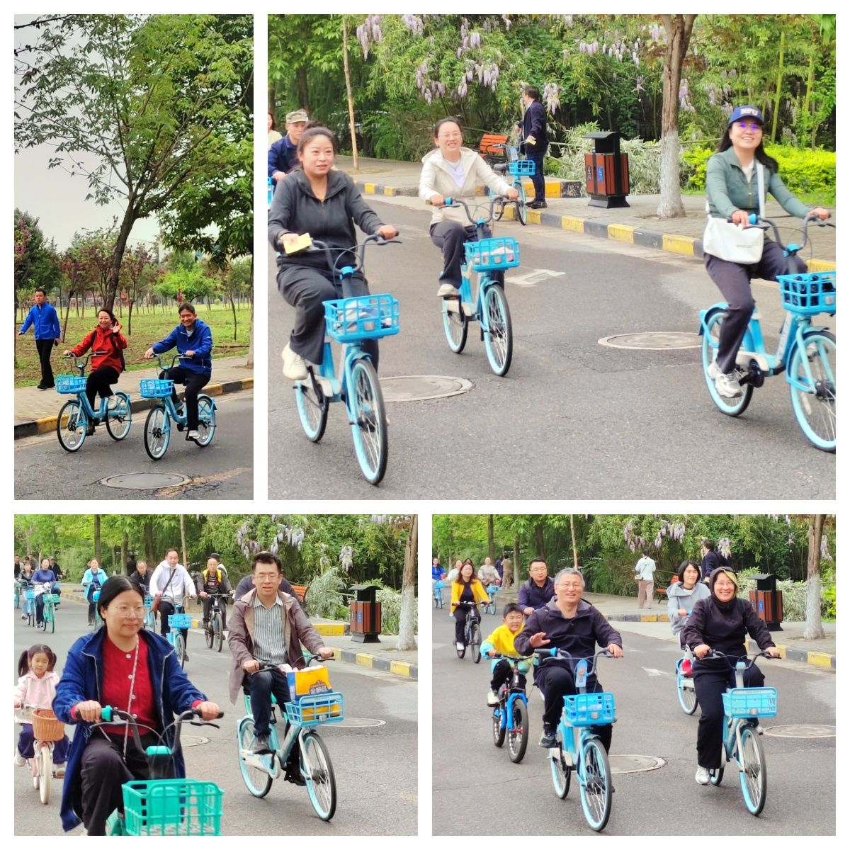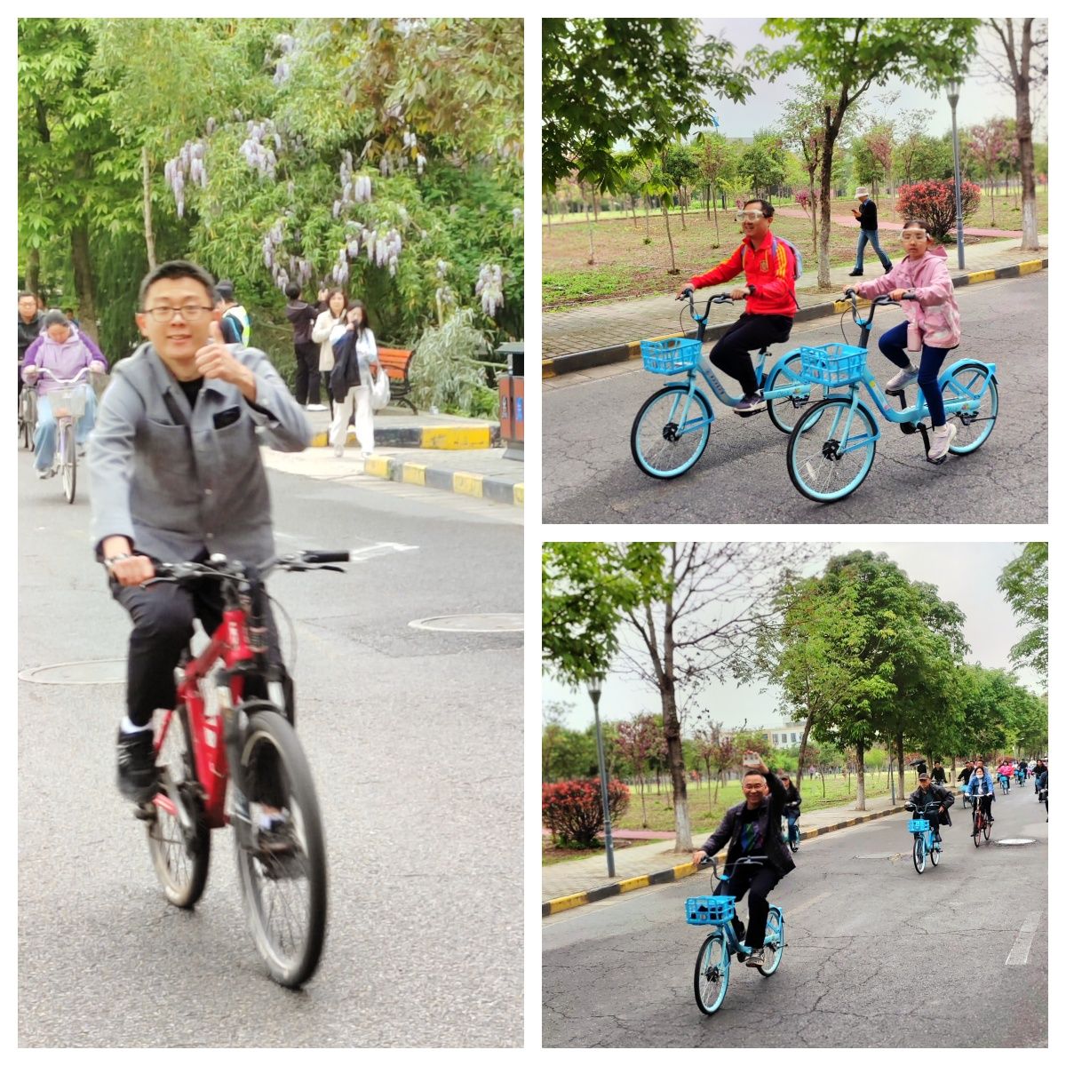 上午九点,长安校区家属区出发点人头攒动,热闹非凡。a小说 的老师们脸上洋溢着期待的笑容,身着轻便运动装,在学院工作人员处有序领取专属贴纸,跃跃欲试。本次骑行路线设计巧妙,老师们需沿指定路线骑行2圈后返回终点。在骑行过程中,学院的老师们展现了良好的精神风貌和团队协作精神。大家三五成群,结伴而行,时而谈笑风生,时而驻足欣赏沿途美景,平日里严谨治学的老师们此刻尽情享受着骑行带来的自由与快乐,感受着校园春日的勃勃生机。