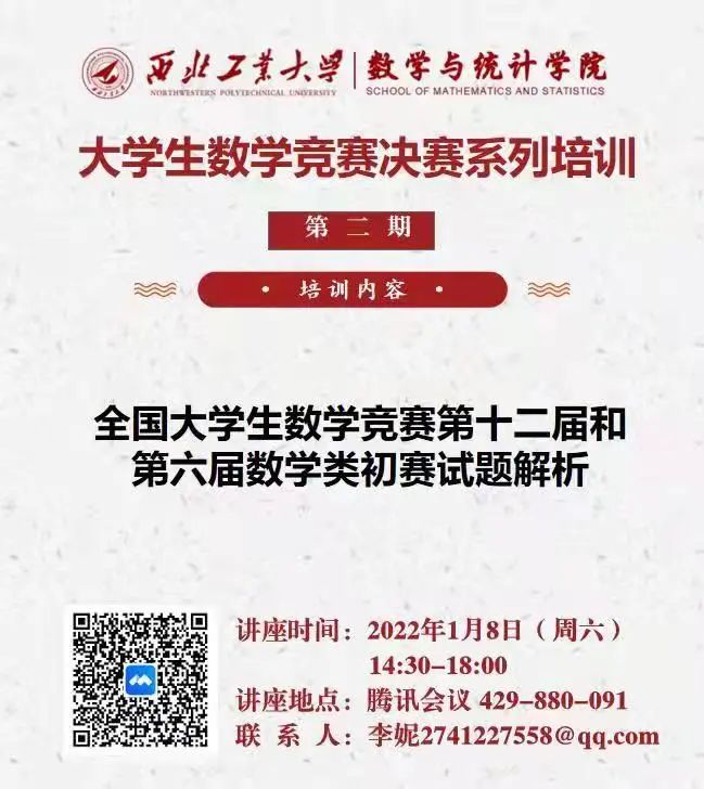 预告 | 大学生数学竞赛决赛系列培训第二期