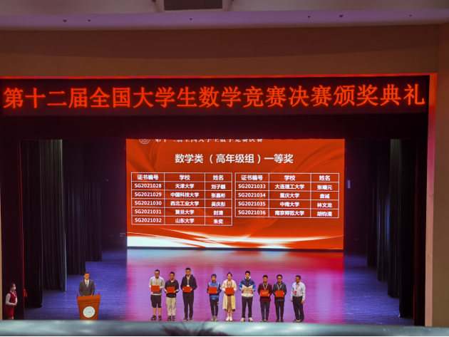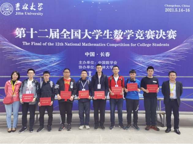 2021年5月15日早上,第十二届全国大学生数学竞赛决赛在吉林大学举行。668名来自北京大学,哈尔滨工业大学,西安交通大学等全国高校的学生同场竞技,展示其强大的数学实力。我校8名学生参赛,最终获得全国一等奖三项、全国二等奖一项、全国三等奖四项,一等奖数量首次突破三项,获奖数量也创我校历年最高。