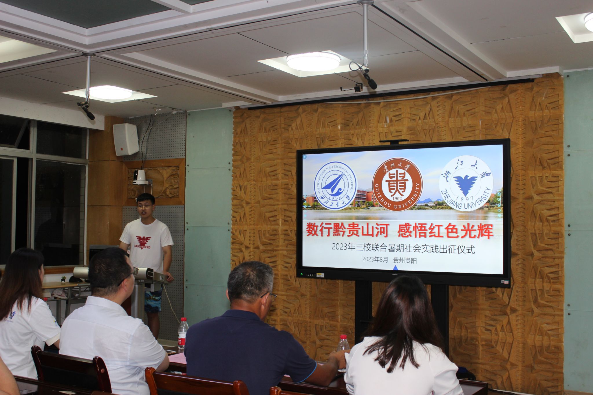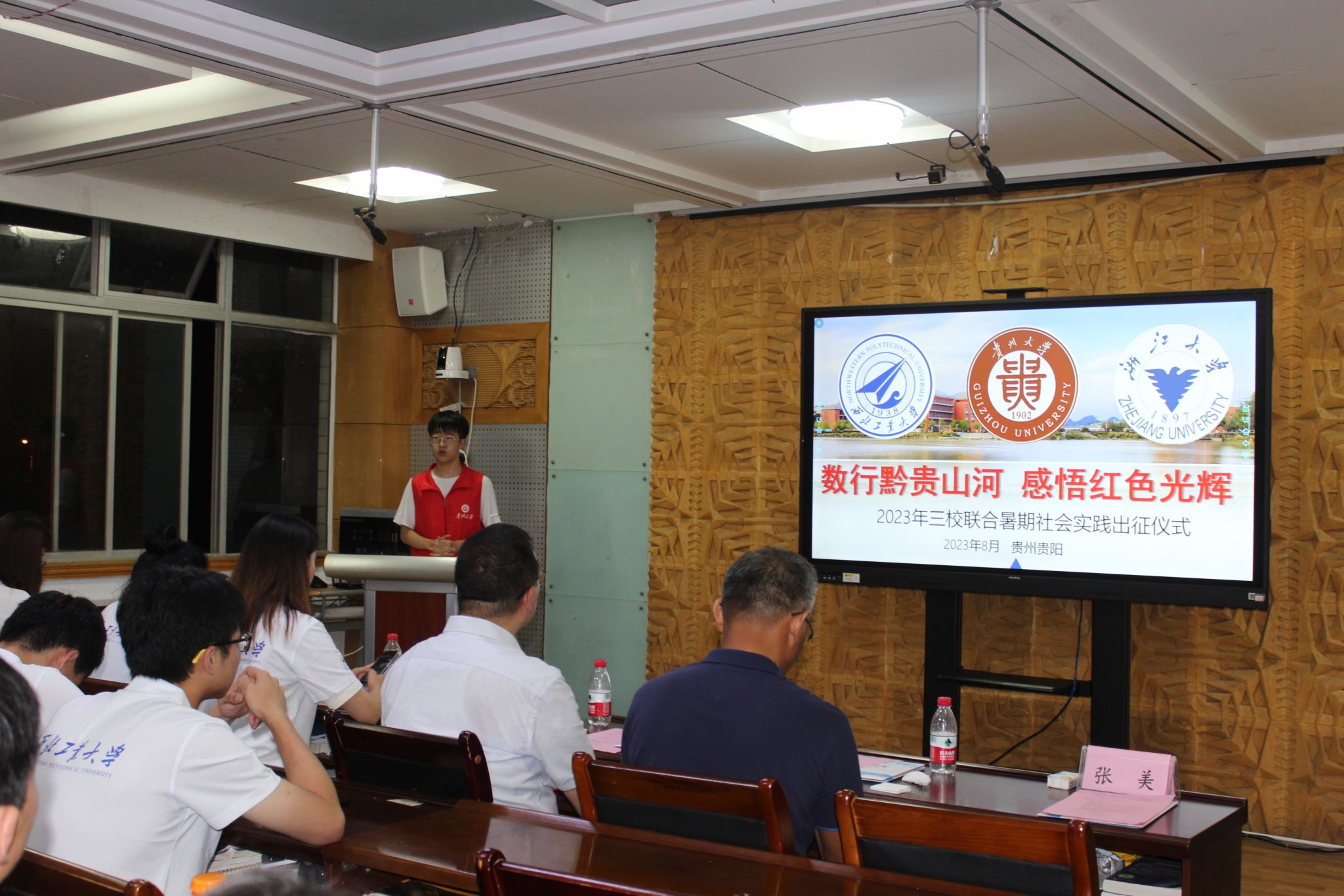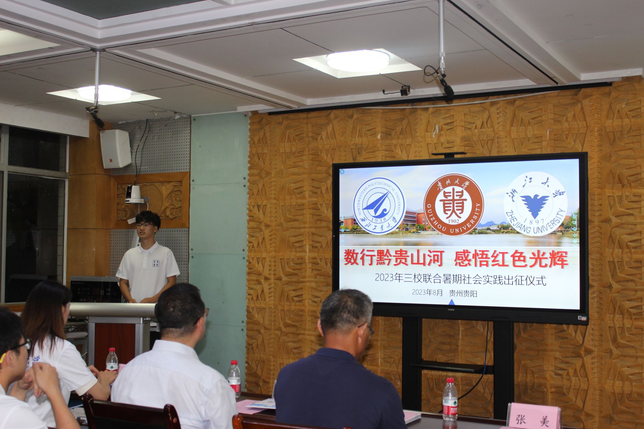 2023年8月5日,a小说 、贵州大学及浙江大学三校联合社会实践出征仪式在贵州大学东校区博学楼329会议室举行。贵州大学a小说 院长王锦荣教授、贵州大学学术委员会办公室主任贾平生教授、a小说 党委副书记张莹教授、a小说 学校办公室戴卓老师、贵州大学a小说 辅导员张美老师出席,三校实践队全体成员22人参加。会议由贵州大学a小说 团委书记高洪老师主持。