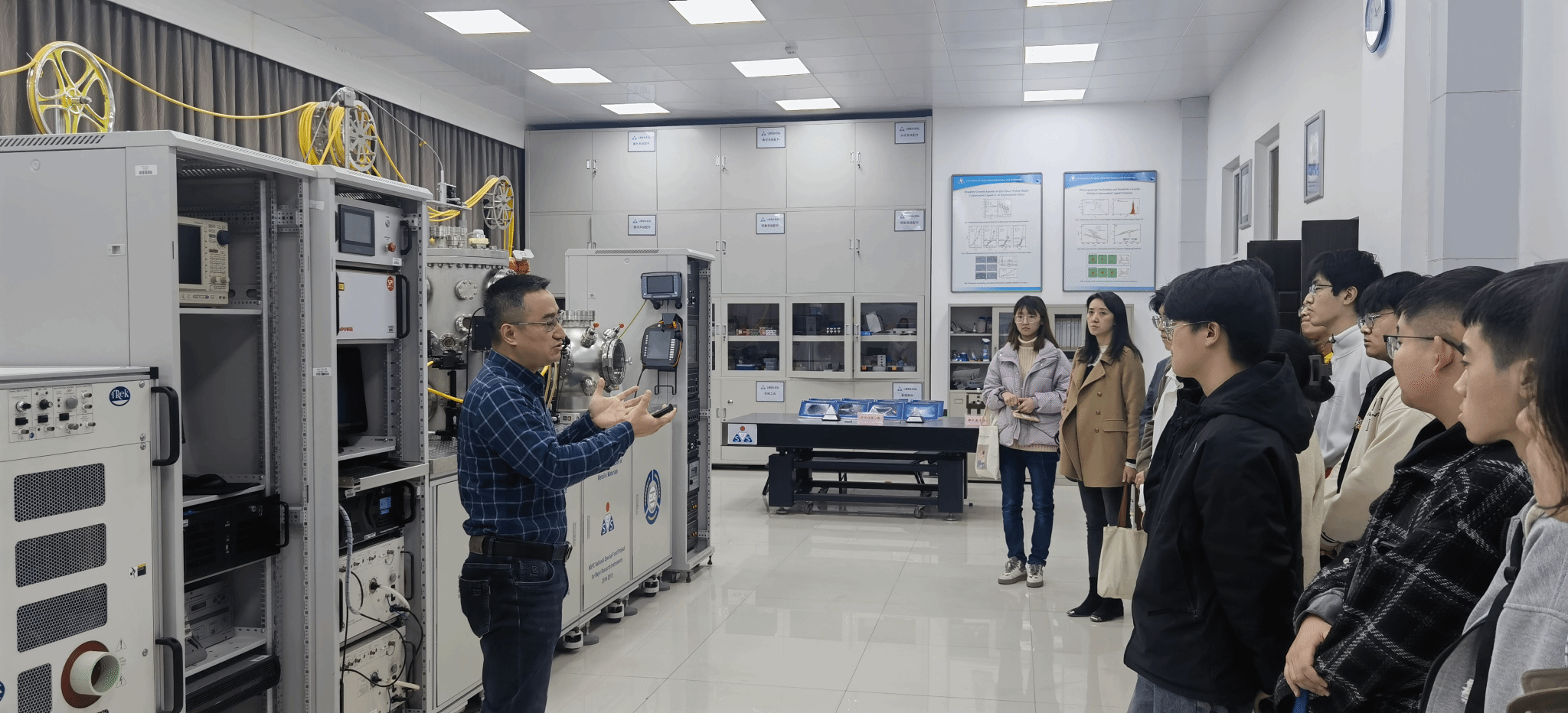 为丰富学生的科技知识,帮助学生了解学科特点、专业特色与研究方向,做好学业规划与未来方向选择,提升人才培养质量,a小说 组织开展“数”研交融,“统”探新途——走近重点实验室系列活动。3月15日上午,学院党委副书记张莹、本科2021级班主任夏常春带领15名学生走近省部级重点实验室——空间材料科学与技术实验室。