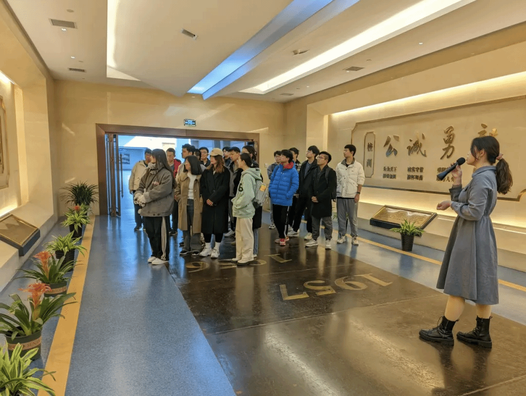 2023年11月15日上午,a小说 学生会功能性团支部全体成员在校史馆前集合,在校史馆宣讲团志愿者的带领下参观校史馆,刚入校史馆,眼前的“公诚勇毅”校训和“三实一新”校风让人大受震撼。