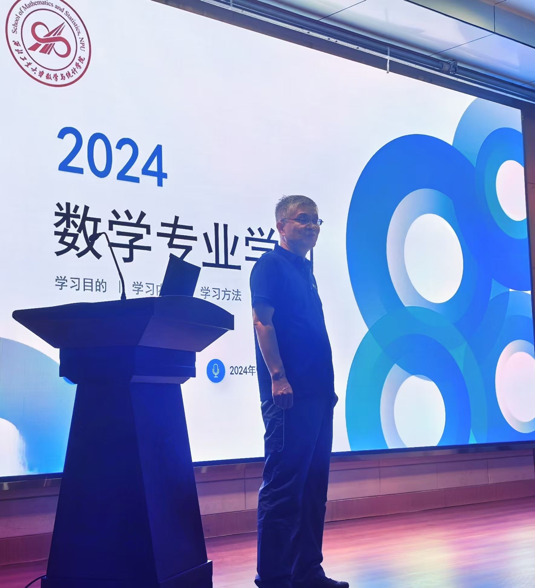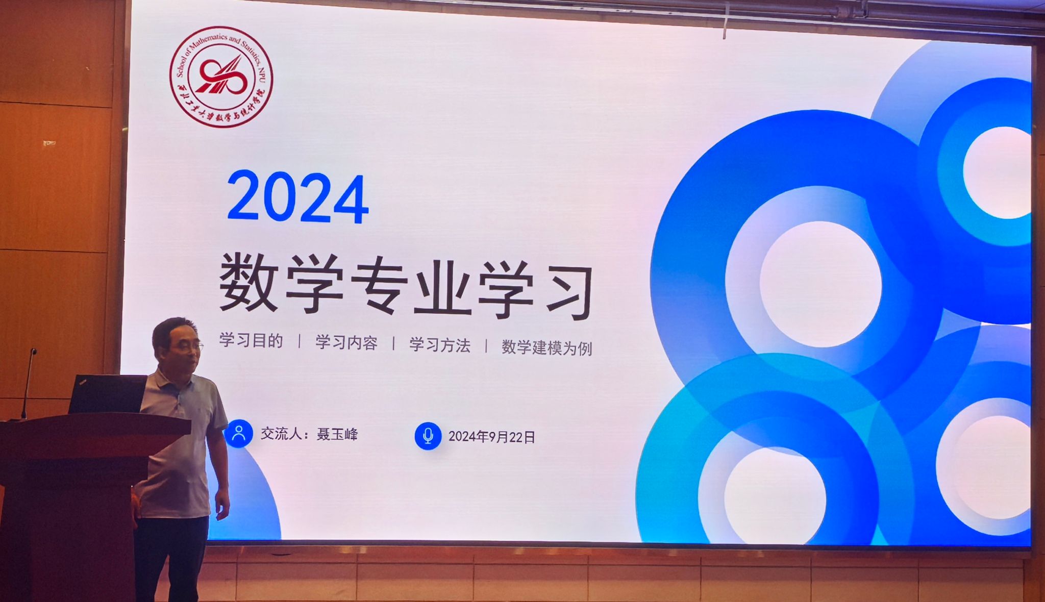 9月22日, a小说 院长聂玉峰为2024级149名本科新生讲授了关于数学专业学习的主题思政课,引领大家进一步深刻体会学院“坚持‘科学问题导向,应用问题驱动’,践行‘数学+’、‘+数学’的创新人才培养模式”以及未来建成人才培养与科学研究并重、应用特色鲜明的国内一流a小说 的远大目标。学院数学科学系主任陆由、计算科学系主任赵俊锋、应用概率统计系主任王亮、院长助理兼2024级本科生辅导员班凯共同聆听了这生动的一课。报告会由副院长郭千桥主持。