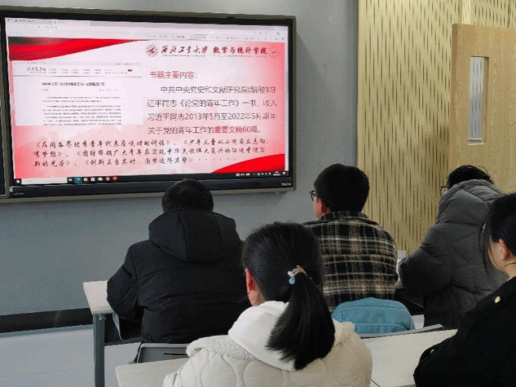 本次学习会中,首先向参会工作人员介绍了《论党的青年工作》一书的主要内容,其主要收录了习近平总书记2013年5月至2022年5月期间关于党的青年工作的重要文稿60篇。并对《论党的青年工作》所阐述的理念,以及对于广大青年的要求做了具体阐述。书中提出要更好团结、组织、动员广大青年,要毫不动摇坚持党对青年工作的领导。同时,习近平总书记强调,把青年一代培养造就成德智体美劳全面发展的社会主义建设者和接班人。
