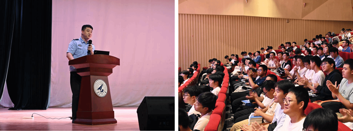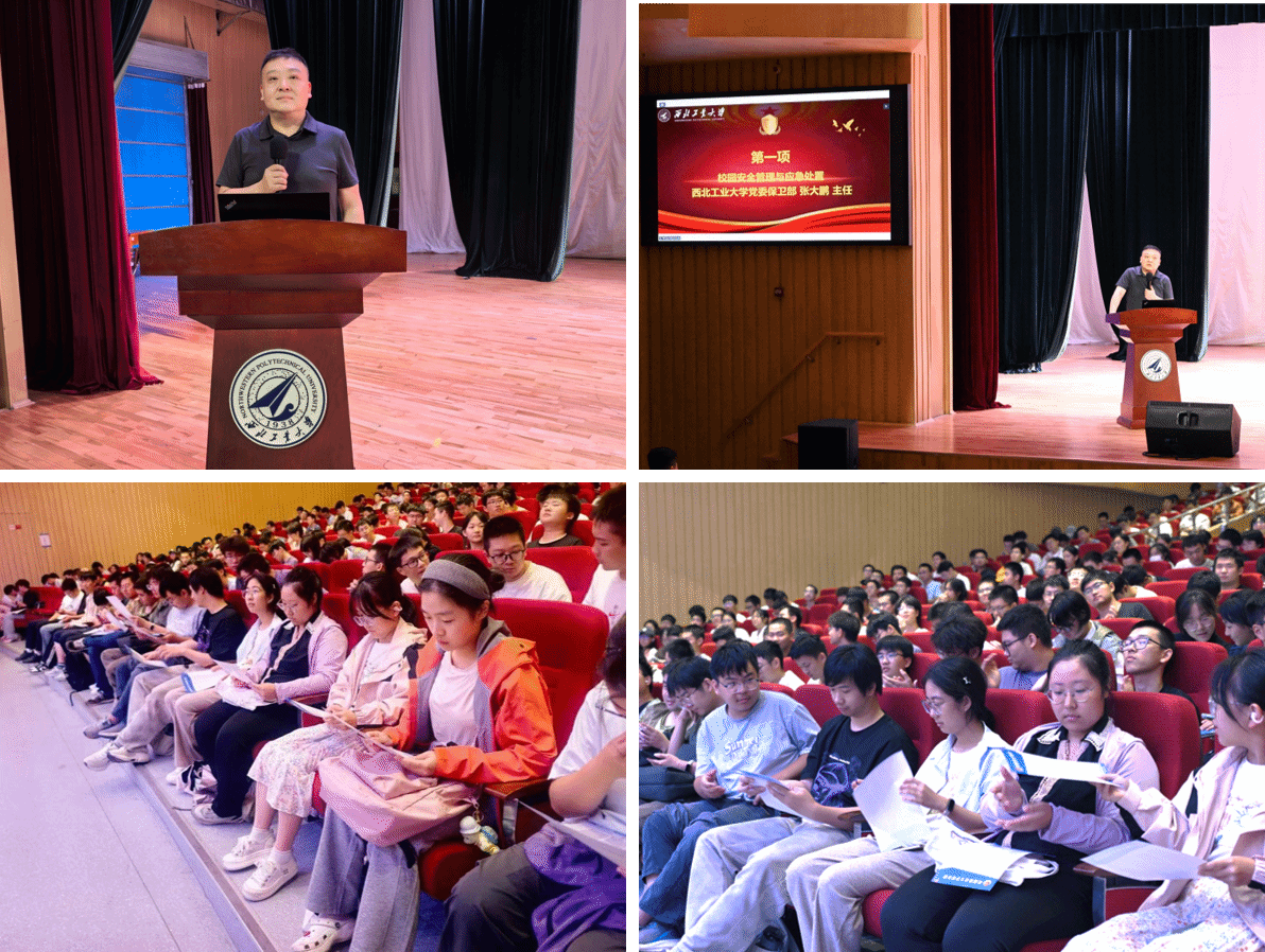 为进一步增强新生安全防范意识,提高应急处置能力,9月11日,a小说 与航空学院联合为2025级新生举办了一场内容丰富、形式多样的安全法制教育讲座。出席本次讲座的嘉宾有a小说 党委保卫部张大鹏主任、西安市公安局高新分局治安大队王冬警官、西安市公安局交通管理支队碑林大队刘潇泽警官、a小说 党委副书记张莹、航空学院2025级本科生辅导员韩少强、a小说 研究生辅导员宋博、a小说 2025级本科生辅导员张倩。讲座由张倩主持。