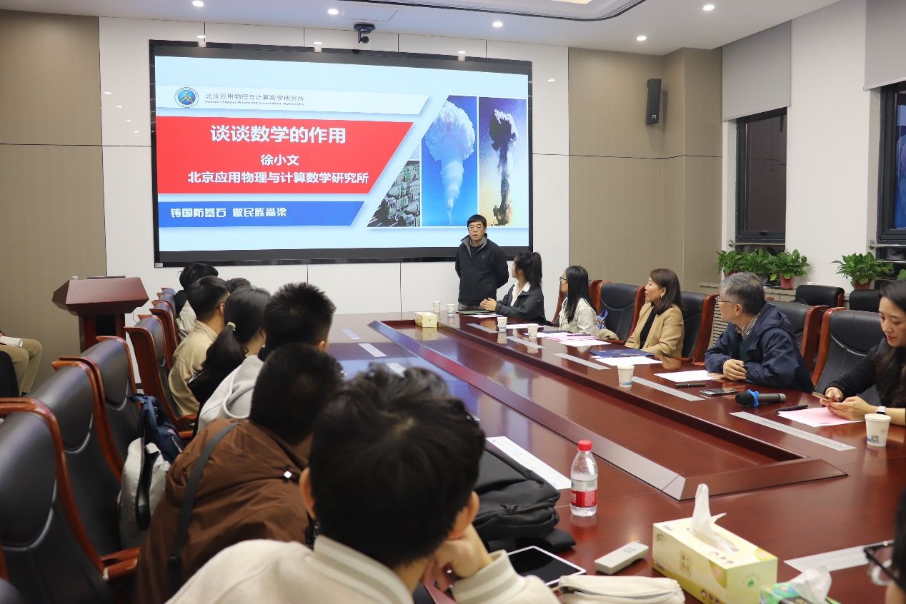 聂玉峰院长在致辞中提出同学们要沉潜扎实、永葆好奇、跨界创新,勉励大家打破学科界限,以徐小文研究员为榜样,在交叉融合中探寻创新突破。此外,期望通过研究所与高校的多元教学模式,帮助同学们深入解构数学学科,深刻认识数学对国家发展的重要价值,在学术道路上稳步前行。