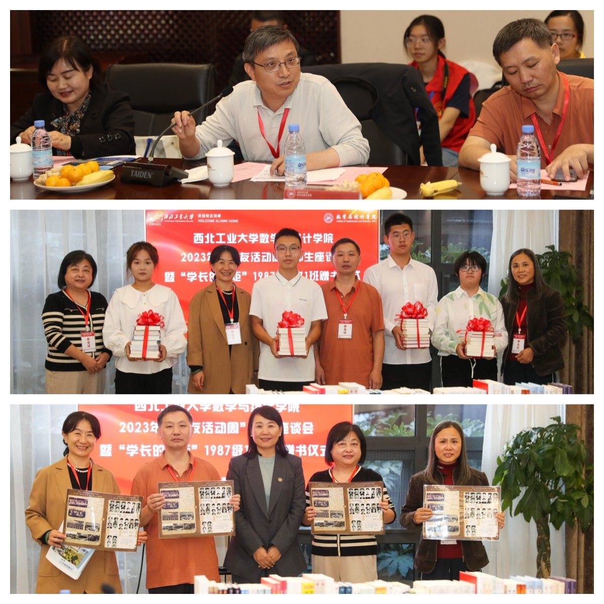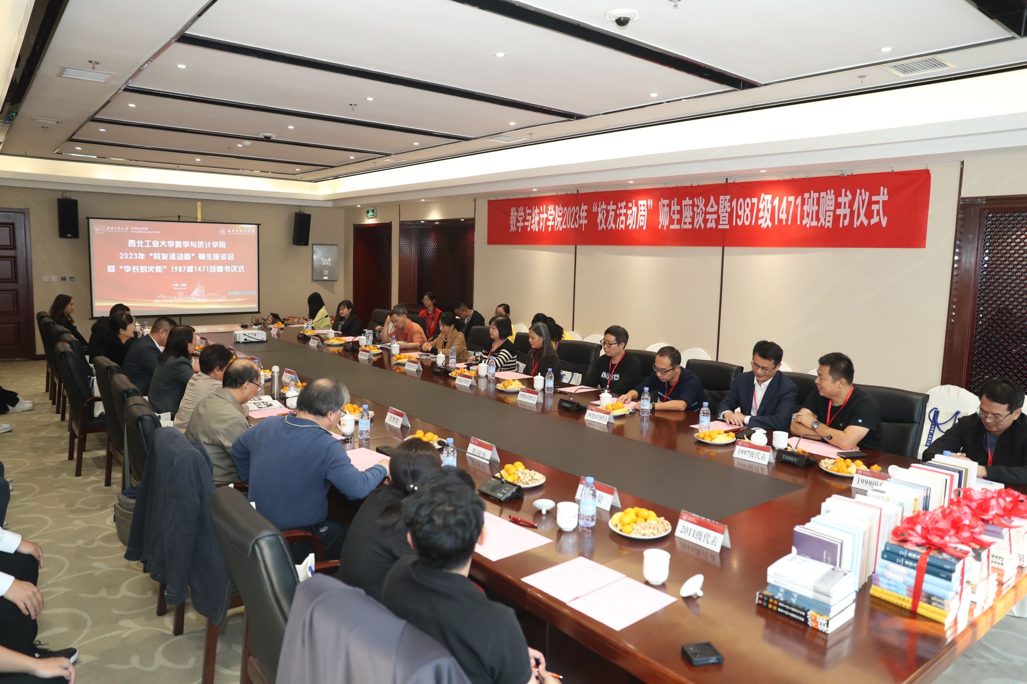 在庆祝a小说 建校八十五周年之际,10月14日,a小说 2023年“校友活动周”师生座谈会暨“学长的火炬”1987级1471班赠书仪式于长安校区南山苑成功举办。学院党委书记王莉,学校校友总会办公室副主任刘江,学院党委委员王振海,学校原1系党总支副书记张雪霞,学院资深教师代表张凯院、欧阳洁、彭国华,曾在学院担任辅导员工作的台炳龙、王莹与来自祖国各地的学院1987级、1992级、1997级、1999级、2011级、2017级等近30位校友欢聚一堂,畅叙别情,展望未来。