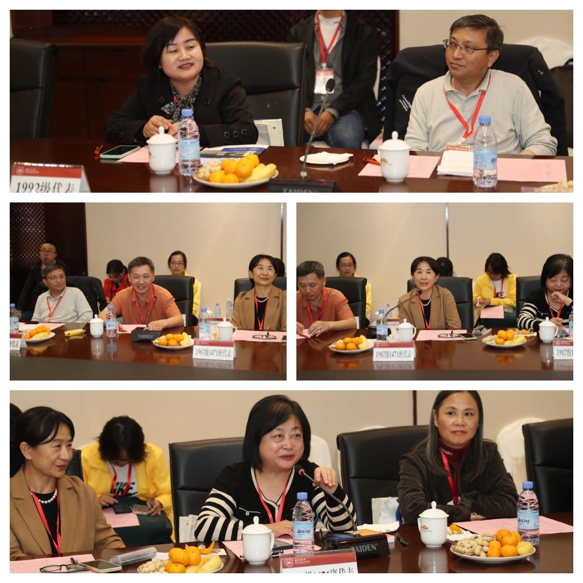 下午,在学院组织的师生座谈会上,院长聂玉峰(线上致辞),党委书记王莉依次代表学院对校友们回家表示热烈的欢迎,在介绍学院自2019年建院以来取得长足进步和快速发展的同时,也坚定表示,未来学院将在广大师生和校友们的热切关注与持续支持下,锚定学校“127”目标任务,奋力在学校“总师育人文化”的引领下,在人才培养、科学研究、师资队伍建设与国际合作等方面再创佳绩。在场教师与校友们也纷纷建言献策,或是以个人求学及工作经历分析基础学科在当今社会发展的重要作用,或是从个人工作岗位出发寻求与学院进一步的合作新模式,或是勉励参会的学院新生代表珍惜在校期间的幸福时光,为个人未来发展打下坚实的学识基础。师长、学长们情深意切,语重心长,学弟、学妹们受益匪浅,掌声阵阵。