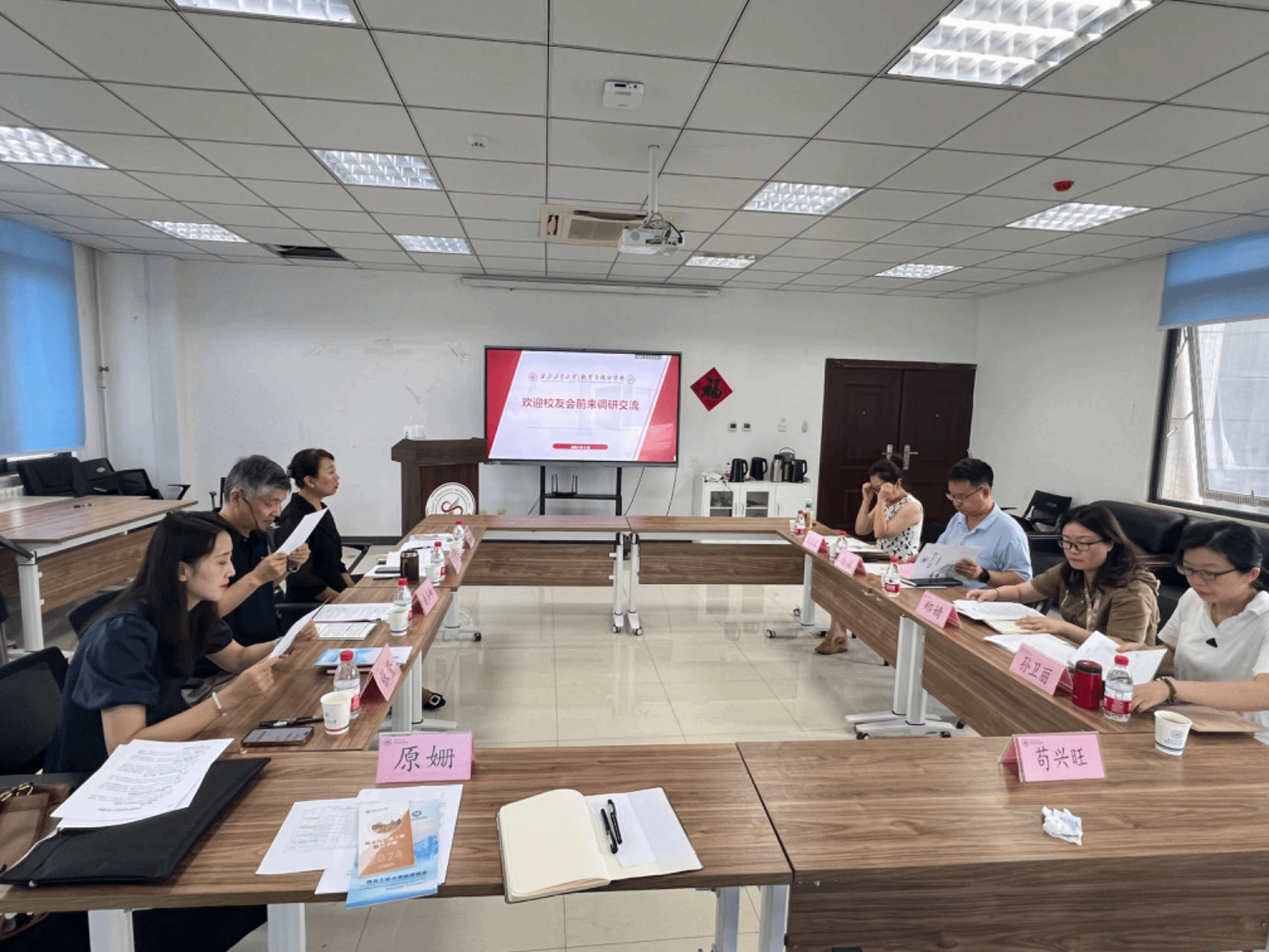 2024年9月13日上午,学校对外联络办公室主任杨铭、副主任徐伟侠、校友服务科科长郑婧、基金科科长孙卫丽一行四人来学院进行调研。a小说 院长聂玉峰、党委书记王莉、党委副书记张莹等参与本次会议,会议由王莉主持。