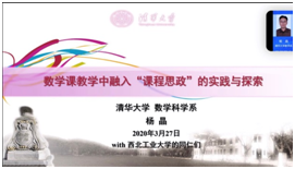 为提高学院教师的课程思政意识,实现数学课程与思政课程同向同行,形成协同效应,a小说 于3月27日下午3点通过zoom视频会议,举办了第二期启翔数苑教学研究沙龙活动。本次沙龙活动主题为“立德树人,润物无声,大学数学课程思政之我见”,特邀清华大学数学科学系杨晶副教授,针对数学课教学中融入“课程思政”的实践与探索的经验和体会进行了分享,并就教师如何结合新兴教育技术和在线教学方法,把思政教育贯穿大学数学课程教学全过程,坚持立德树人展开交流和讨论。理学学院联合党委杨铭书记、张莹副书记,a小说 都琳副院长、徐根玖副院长参加了此次沙龙活动,沙龙由a小说 副院长都琳主持。a小说 、西安电子科技大学以及西安邮电大学的30余位教师参加了此次沙龙活动。