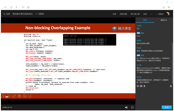 2020年7月21日-7月30日,a小说 暑期国际讲堂《高性能计算与系统优化》通过腾讯课堂线上授课圆满完成。该课程由学院邀请海纳国际集团的亚太地区技术负责人商磊博士(特聘研究员)进行授课。来自教育实验学院、计算机学院、a小说 、动力与能源学院、物理科学与技术学院、管理学院、西工大伦敦玛丽女王大学工程学院的本科、研究生及旁听师生共计40余名参加了学习。