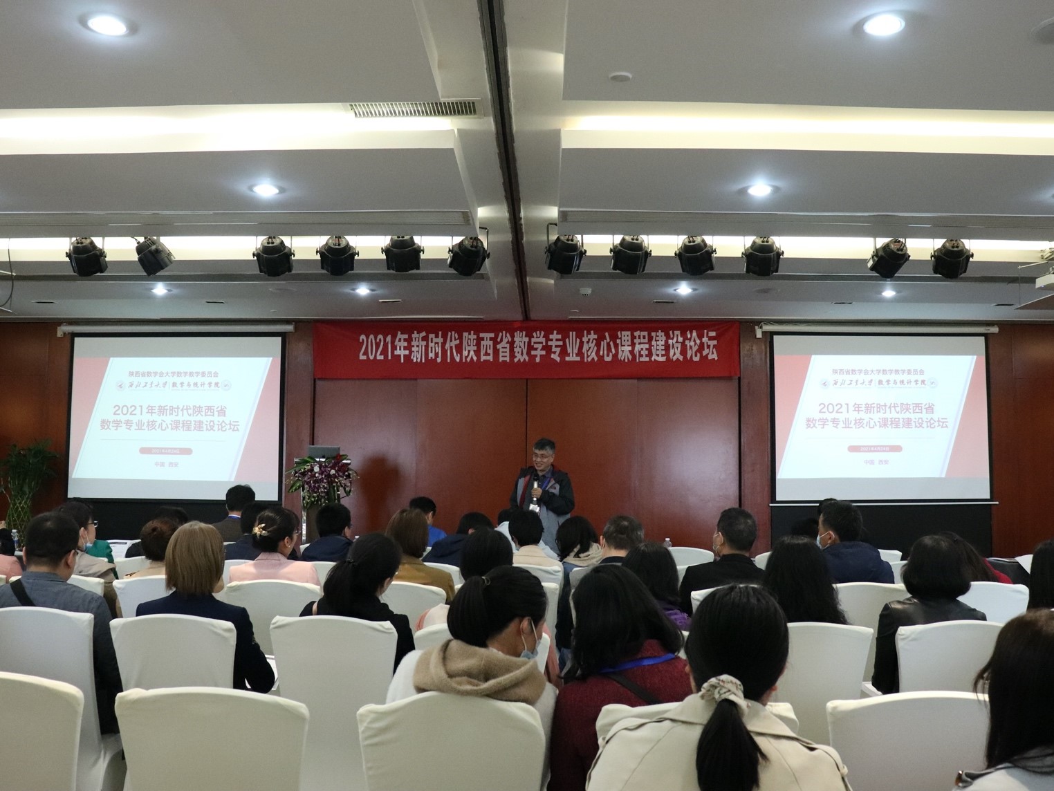 由陕西省大学数学教学委员会主办,a小说 承办的新时代陕西省数学专业核心课程建设论坛,于2021年4月24日下午在西安市高新区志诚丽柏酒店20楼多功能厅召开。本次论坛旨在加强陕西地区数学专业核心课程建设、促进陕西高等院校数学核心课程教师之间的交流。会议邀请了厦门大学林亚南教授、中国科技大学赵卿教授、西北大学曲安京教授进行报告。来自西安、宝鸡、杨凌、兰州、银川等地的26所高校130余位高校数学课程负责人及教师参加了本次论坛。