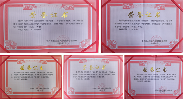日前,在a小说 “明理增信、崇德力行”庆祝建党百年示范“微党课”活动公布的评审结果中,a小说 党委选送的五个作品均榜上有名,全部获奖。其中由学院党委副书记(主持工作)王莉同志讲述的微党课《学百年党史 讲巾帼故事》在101个获奖作品中拔得头筹,位列第一。其余作品《传承先辈行动,奋斗青春荣耀》《奋斗百年路 启航新征程 向世界一流高等教育强国迈进》《讲西工大老一代数学人故事,悟共产党员精神》《忆往昔,重温红军长征史;再出发,迈进百年奋斗目标新征途》分获两个二等奖、两个三等奖共计四项殊荣。