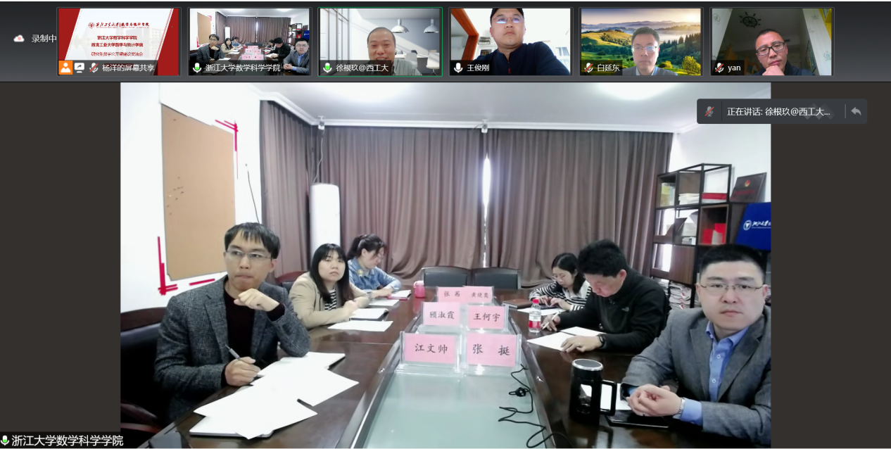 通过此次线上调研活动,学院进一步加强了与浙江大学数学科学学院的交流与合作。双方围绕课程结构设置和教学形式的进一步创新进行了充分研讨,为学院研究生数学课程体系建设与课程组织,以及本科生强基班培养模式的完善提升提供了很好的借鉴。今后学院将会继续加强与其他高校的沟通交流,学习先进理念和经验,为学校“双一流”建设夯实数学基础。