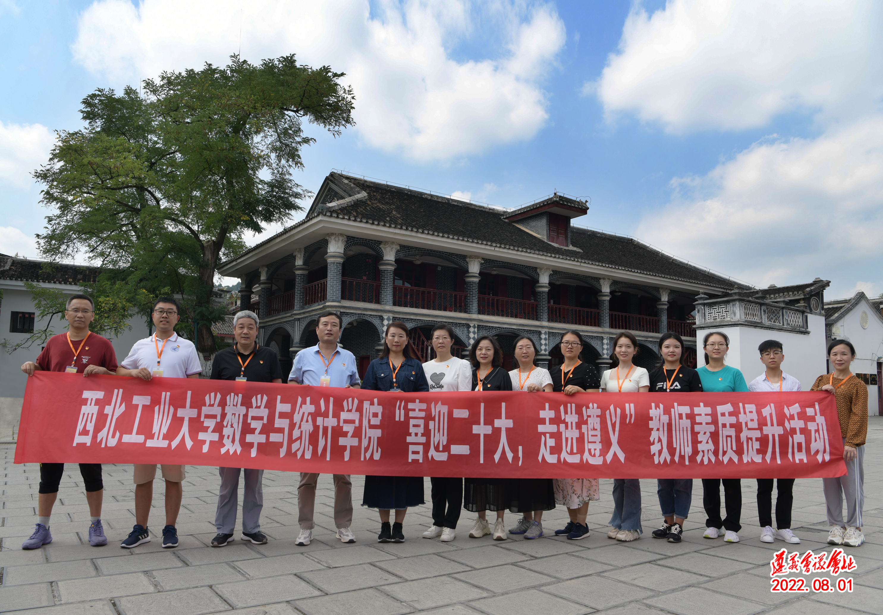 为喜迎党的二十大,进一步深化党史学习教育,感受遵义红色文化,2022年7月30日至8月3日,a小说 14名教工党员在党委书记王莉同志带领下,赴贵州遵义开展教师素质提升活动。