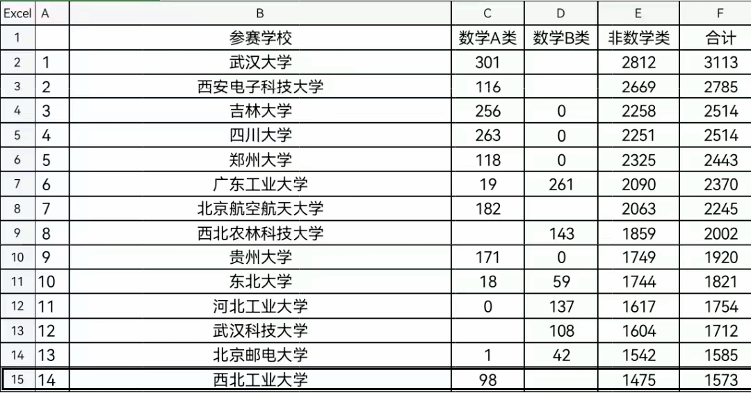 本届竞赛我校共有1573人参加(数学类98人,占6%,非数学类1475人,占94%),参赛规模居全国第14位,再创新高!经过激烈的角逐,我校共有645人获奖,其中数学类获奖40项(一等奖8项,二等奖12项,三等奖20项),非数学类获奖605项(一等奖143项,二等奖182项,三等奖280项)。