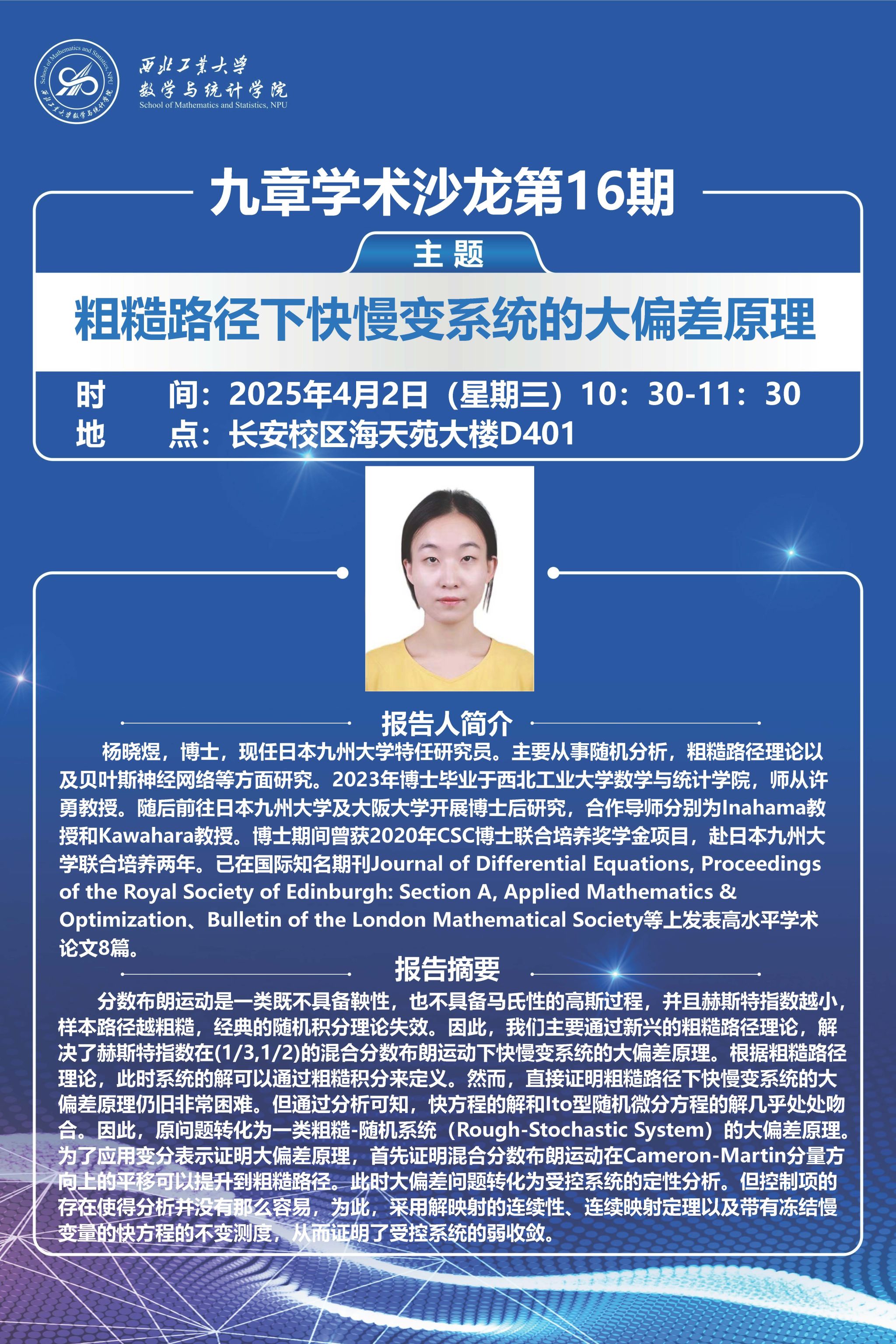 【九章学术沙龙第16期】粗糙路径下快慢变系统的大偏差原理