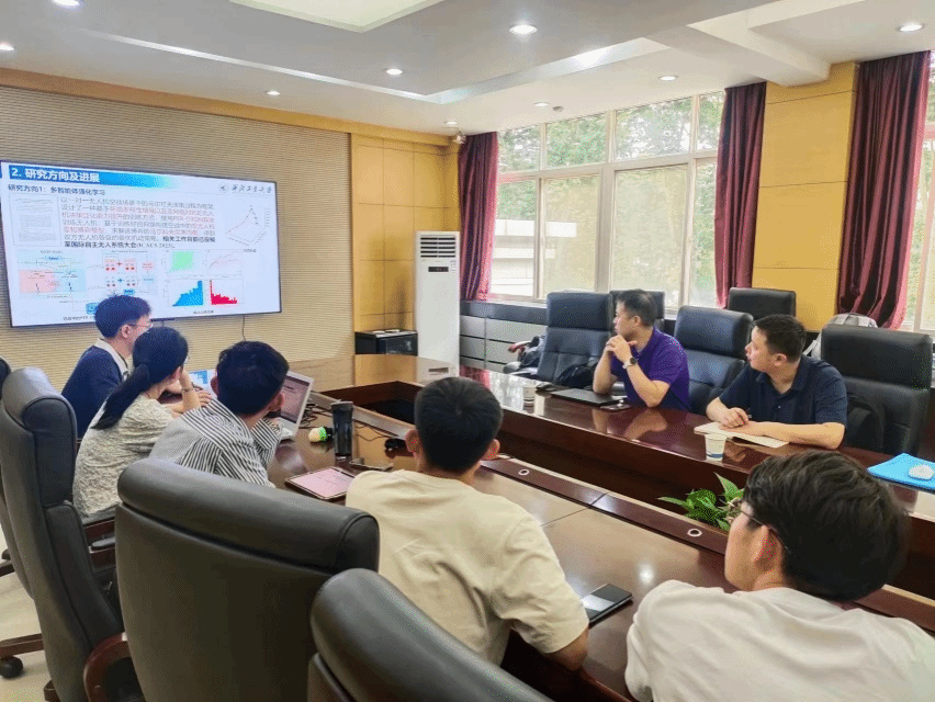 期间,各位导师介绍了团队承担的相关国防应用项目情况。博士生段泽坤、平超、白辛迪和硕士生李泽胜、王立颖分别汇报了他们的研究工作,主要涉及博弈论与机制设计、优化理论与方法、强化学习算法、智能决策等数学模型及算法及其在军事场景中的应用。