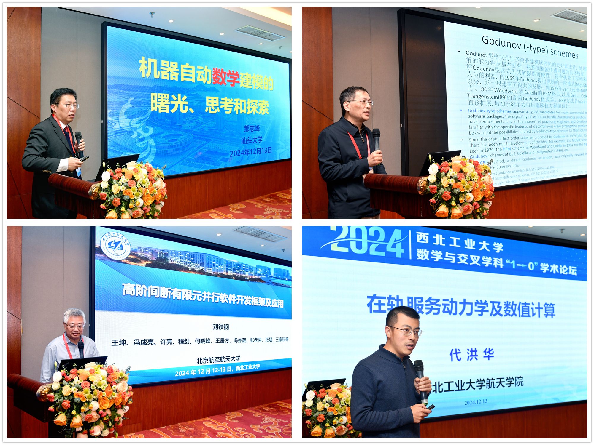 2024年12月12日-13日,由a小说 发展规划处、科学技术研究院、a小说 共同举办的a小说 数学与交叉学科“1→0”学术论坛在西安举行。会议邀请中国科学院数学与系统科学院副院长戴彧虹研究员、北京大学汤华中教授、北京航空航天大学刘铁钢教授、汕头大学校长郝志峰教授、空天飞行空气动力科学与技术全国重点实验室计算数学研究中心朱华君主任、我校机电学院朱继宏教授、航天学院代洪华教授、航海学院黄桥高教授做大会特邀报告,中国科学院院士、我校副校长张卫红教授,发展规划处副处长袁云,科学技术研究院院长王伶、处长李蕴、副处长屈峰,a小说 院长聂玉峰、党委书记王莉、科研副院长都琳及领导班子成员、学院教师,以及陕西省24所高校教师代表等80余人出席本次论坛。论坛由a小说 党委书记王莉主持。