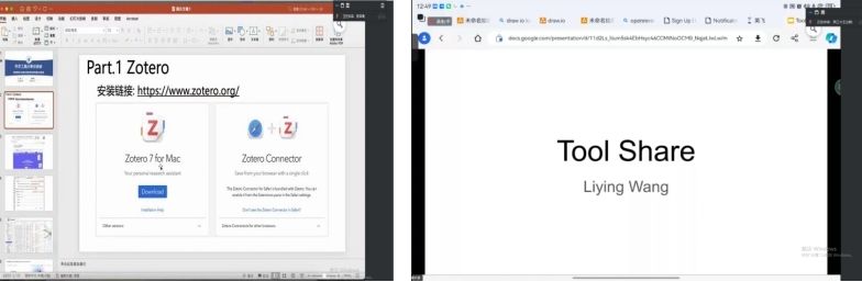 博士生吴泽潇详细介绍了Zotero、Obsidian和学术GPT三款学术工具。他通过现场演示,展示了软件的下载安装、插件配置及使用中的关键注意事项,为与会者提供了极具操作性的指导和使用建议。博士生王立颖分享了文档编辑工具Typora和GitHub.io个人主页的搭建方法,并对Zotero的使用进行了补充说明。此外,他还推荐了思维导图制作工具Xmind以及云端演示文稿制作工具Google Slide。