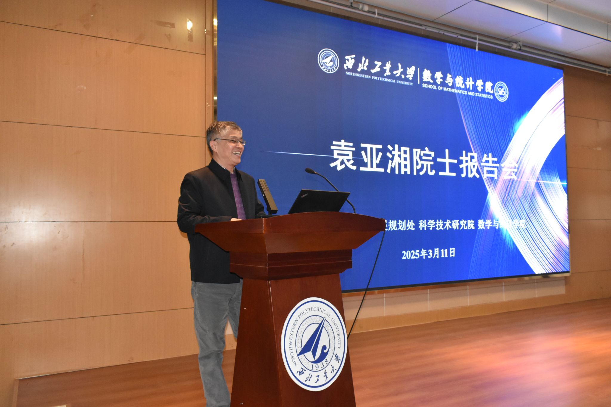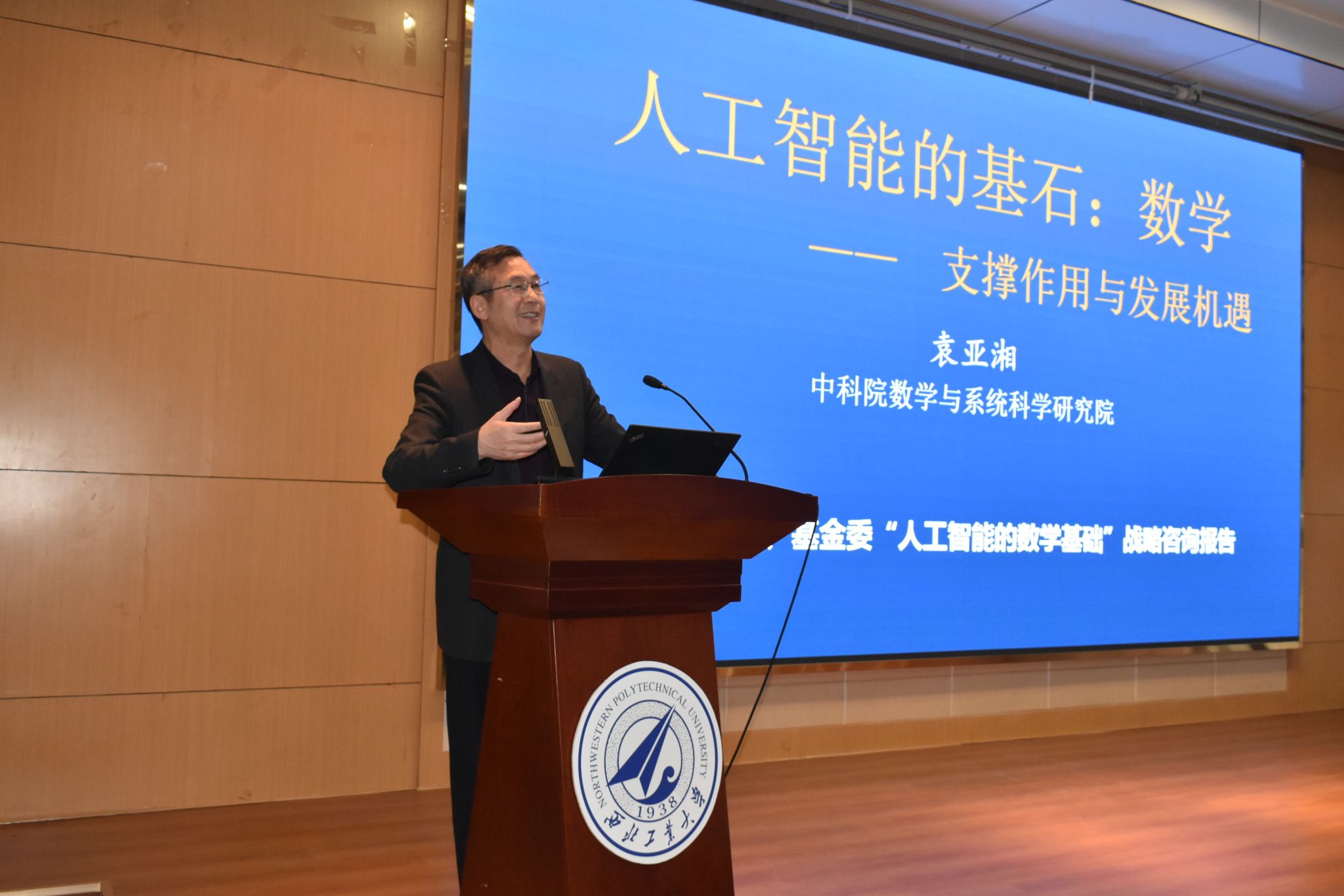 报告会伊始,张艳宁副校长在致辞中指出,一代代西工大人秉持着“干惊天动地事,做隐姓埋名人”的报国情怀,为国家航空、航天、航海事业发展做出了巨大贡献。当前人工智能技术正在深刻改变社会发展格局,数学基础研究在其中发挥着关键作用,西工大始终将数学学科作为创新发展的关键基石,持续深化基础学科与工程应用的协同创新。袁院士作为国际著名应用数学家,此次报告必将为学校交叉学科建设注入新动能。在全场热烈的掌声中,袁院士登上讲台开启分享学术盛宴。