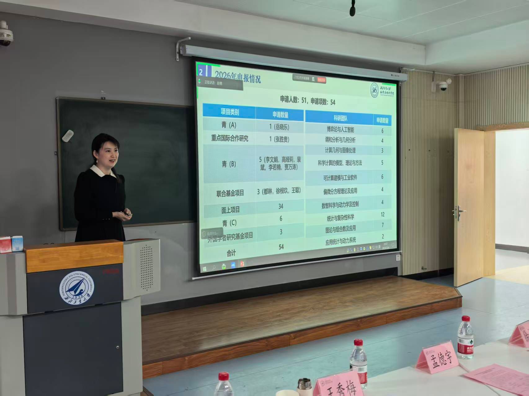 为切实提升我院2026年度国家自然科学基金申报质量,全面把好基金出口关,加强有组织科研,3月6日下午,a小说 在友谊校区西馆成功举办2026年度国家自然科学基金申报辅导会。会议特邀湘潭大学黄云清教授、香港理工大学乔中华教授、郑州大学王秀梅教授、西安交通大学孟德宇教授、江俊教授、徐光魁教授、西安电子科技大学杨丹丹教授以及我校航空学院邓子辰教授等9位专家,为学院教师提供精准辅导。本次辅导会依据研究方向,精准设置了“基础数学组”、“科学计算与信息智能组”和“动力学与控制组”三个分会场同步进行。a小说 院长聂玉峰教授、副院长都琳教授、副院长郭千桥教授及20余位申报教师参会,会议由都琳主持。