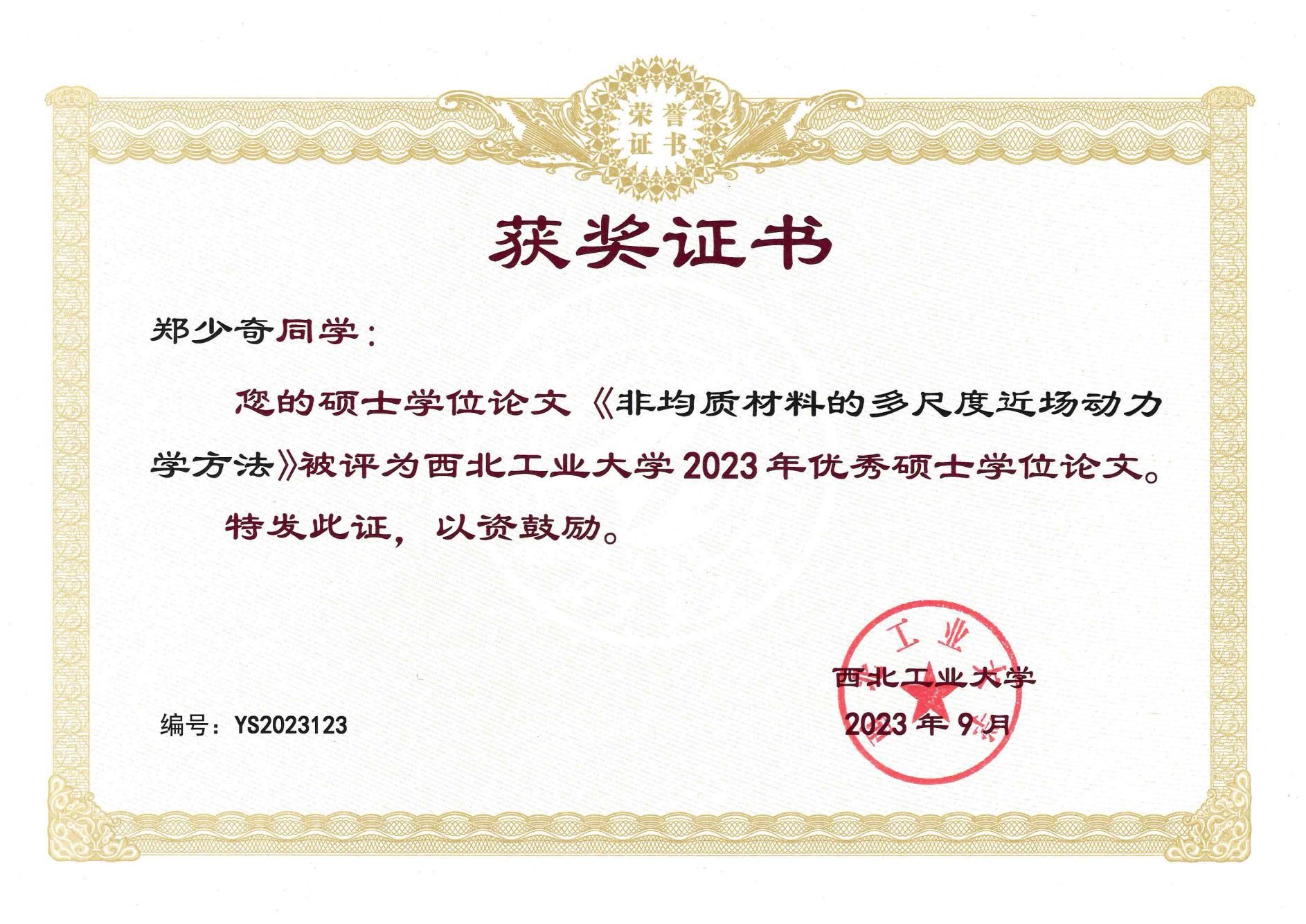 郑少奇,男,计算数学专业,师从杨自豪教授,研究方向为多尺度近场动力学建模与计算。在读期间,获得研究生国家奖学金和一等学业奖学金。建立了不连续变形的多尺度近场动力学模型及自适应耦合算法,提出了全新的整体串行耦合、局部并行耦合的计算框架,解决了传统进场动力学模型的计算效率瓶颈问题,为非均匀材料结构不连续变形问题的数值仿真提供更为有效的计算策略,以第二作者(导师一作)在J Comput Phys、Commun Comput Phys、Int J Mech Sci等数学会T1或中科院1区期刊上发表学术论文3篇。作为核心成员参与中国科学院战略先导科技专项课题、国家重点研发计划课题、重庆市自然科学基金面上项目,获得a小说 优秀硕士毕业生、优秀硕士学位论文等多项荣誉。