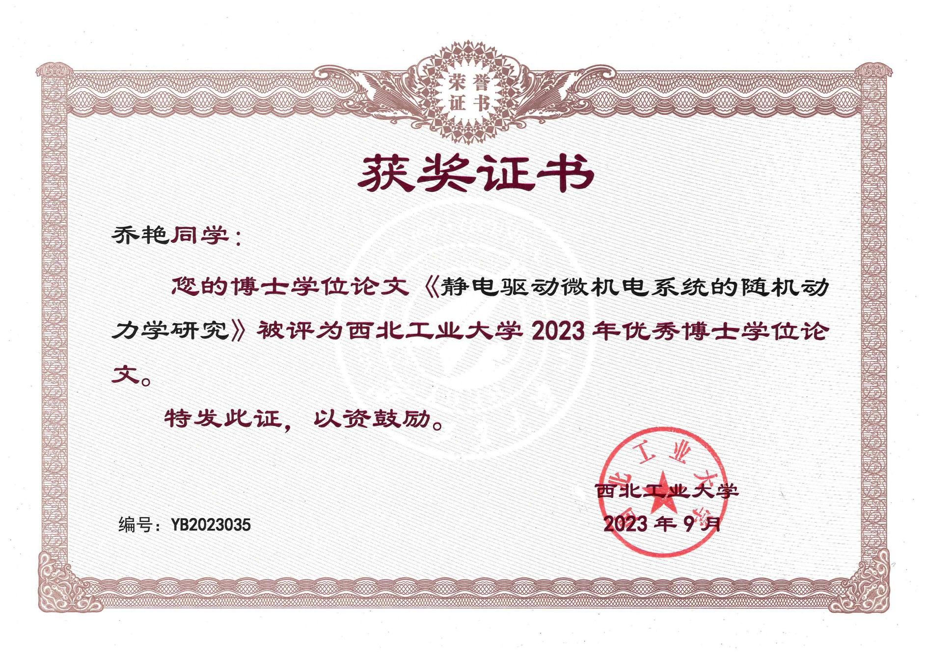 近日,学校公布了《关于公布2023年a小说 优秀博士、硕士学位论文评选结果的通知》,对获得优秀博士、硕士学位论文的学生及导师进行了表彰。我院研究生培养工作再结硕果,共入选优秀博士学位论文2篇、优秀硕士学位论文2篇。