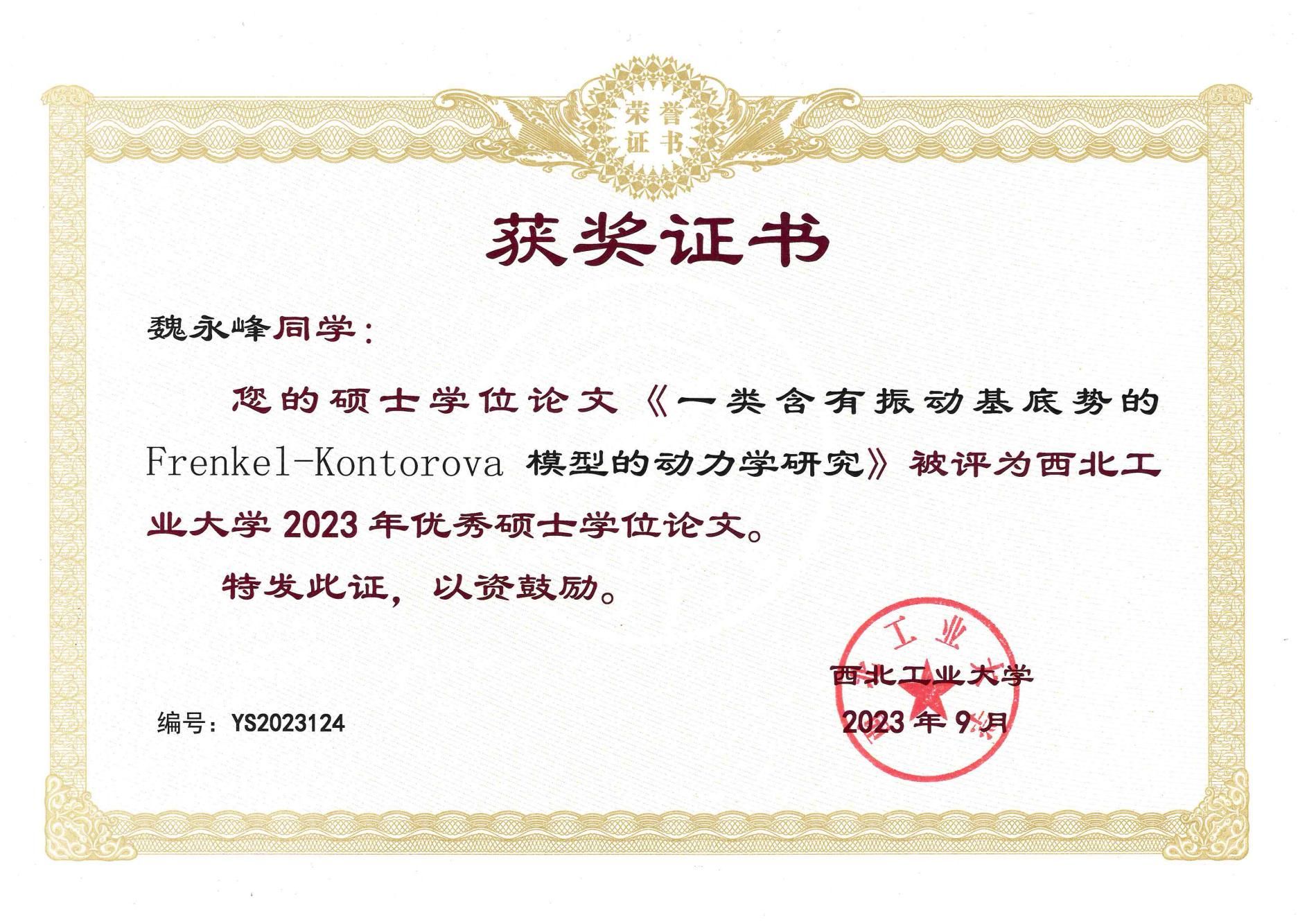 魏永峰, 女, 应用数学专业, 师从雷佑铭教授, 研究方向为非线性动力学。硕士在读期间,以第一作者在非线性动力学领域顶级期刊Physical Review E上发表学术论文一篇,参与两项国家自然科学基金面上项目。曾获得a小说 研究生学业一等奖学金、“a小说 第二届研究生学术论坛”三等奖及“多维视觉” 科创一等奖学金等。