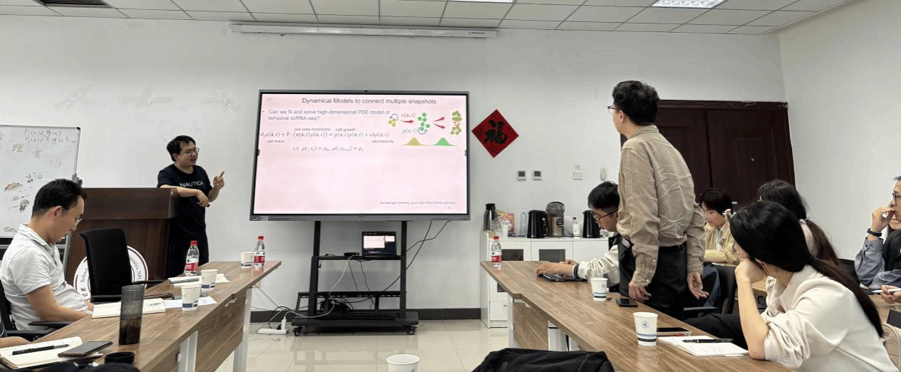 2024年4月22日,a小说 第6期“九章学术沙龙”成功举办。此次沙龙邀请了北京大学周沛劼助理教授作了题目为“Dynamical system approaches for single-cell transcriptomics data analysis”的学术报告,30余位师生参与并讨论,本次报告由裴斌教授主持。