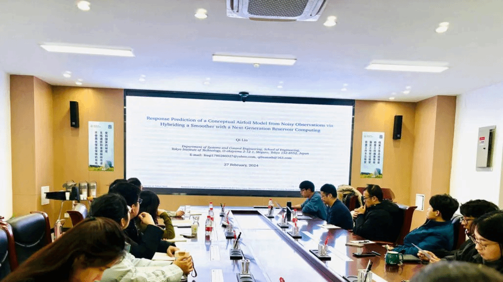 2024年2月27日,a小说 第9期“九章学术讲堂”成功举办。此次讲堂邀请了东京工业大学特别研究员、曾师从我院许勇教授的刘琪博士作了题目为“Response prediction of a conceptual airfoil model from noisy observations via hybriding a smoother with a next-generation reservoir computing”的学术报告,a小说 许勇教授、裴斌教授等20余位师生参加,会议由裴斌主持。
