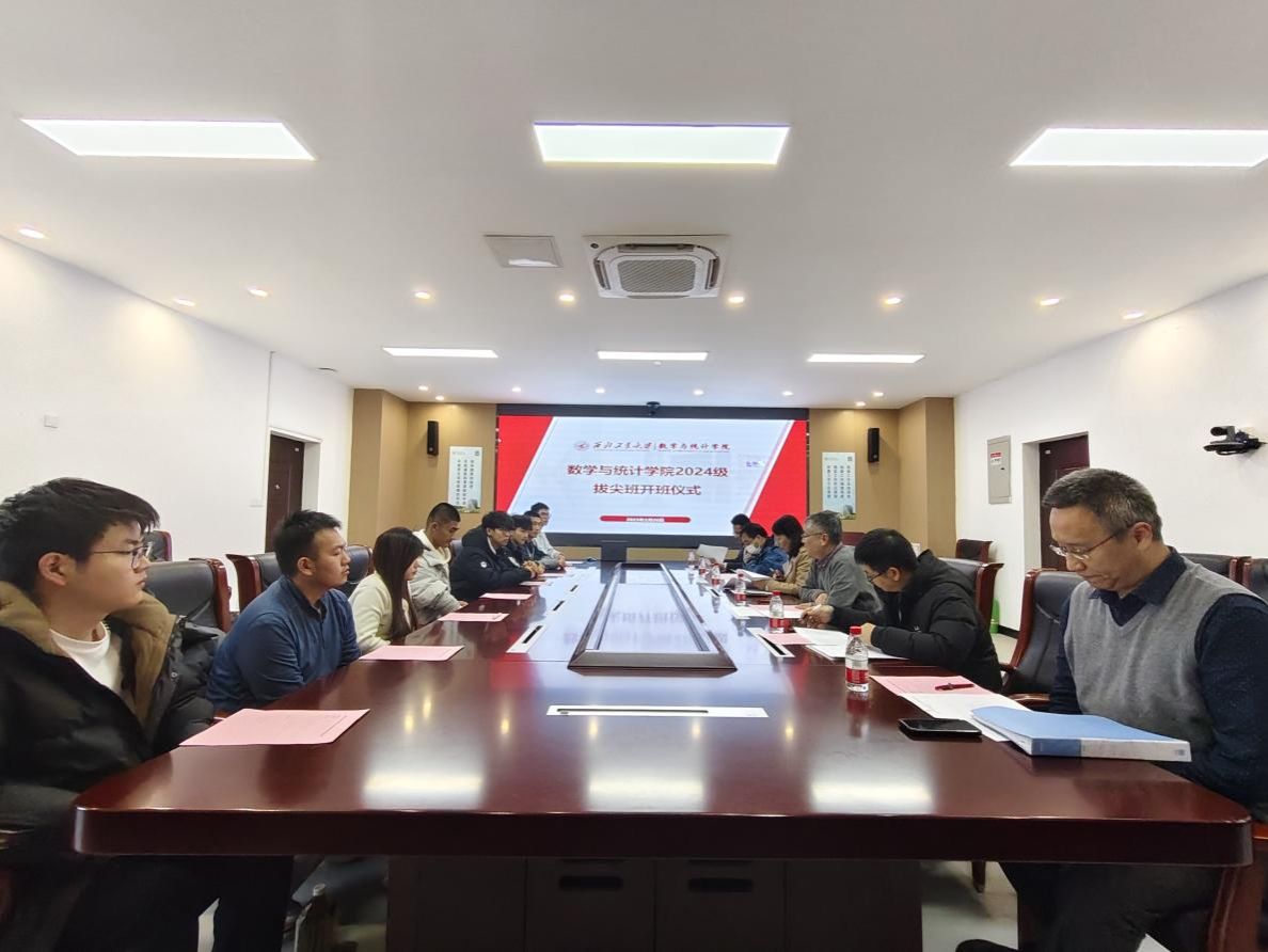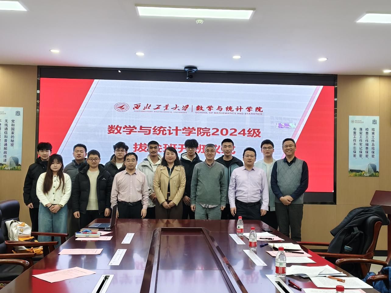 2025年2月26日,a小说 2024级拔尖班开班仪式在长安校区理学院201会议室顺利召开。学院院长聂玉峰、党委书记王莉、副院长郭千桥、院长助理刘晓刚、院长助理兼2024级辅导员班凯、班主任白建超、教学秘书李彦吉及拔尖班8位入选同学参加。仪式由副院长郭千桥主持。