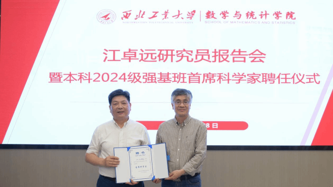 聘任仪式中,聂院长为江卓远研究员颁发本科2024级强基班首席科学家聘书。聂院长指出,国家、学校高度重视强化基础学科拔尖人才培养,强基班聘任首席科学家正是通过“顶尖学者引领+优质资源倾斜+国家战略驱动”的模式,破解基础学科人才培养中的“断层”“脱节” 问题,为学生提供“顶配”的学术成长环境,为国家科技自立自强筑牢人才根基。