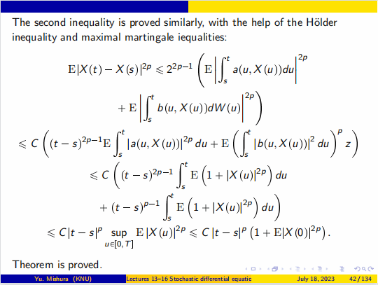 应用随机分析课程中有大量需要长篇推导的定理与引理,给学生的学习带来了极大的挑战,Yuliya Mishura教授针对此类难题,使用“基本方法”,使用较少的高级数学工具,强调直观概率的培养,对重要定理进行了细致的讲解,使同学们能够课堂,理清思路,同时Yuliya Mishura教授积极与同学互动交流,再次耐心解答同学有问题的部分。