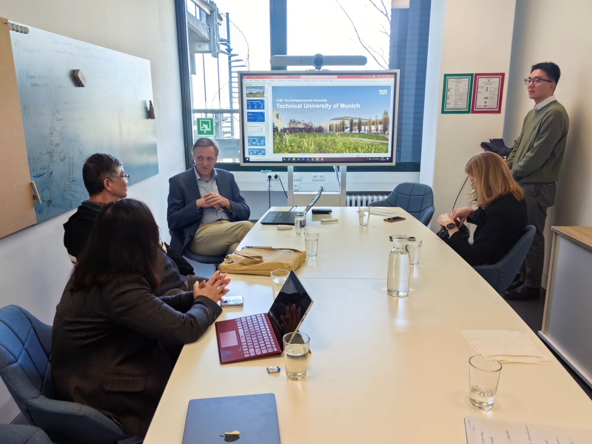4月11日,代表团抵达德国慕尼黑,对慕尼黑工业大学进行交流与访问。首先,慕尼黑工业大学国际部负责人介绍了慕尼黑工业大学的整体情况包括创新生态、科研转化、卓越人才培养等方面,随后参访慕尼黑工业大学智能能源实验室,听取了负责人介绍关于创新能源技术及科技转化中关于全固态电池开发的最佳实践案例。最后,慕尼黑工业大学数学系Jurgen Richter-Gebert教授负责运营数学实践展览馆ix-Quadrat,详细介绍了数学与几何的奥妙,让大家感受到了数学的几何之美,并共同探讨了如何将数学以道具形式直观呈现,辅助教学。